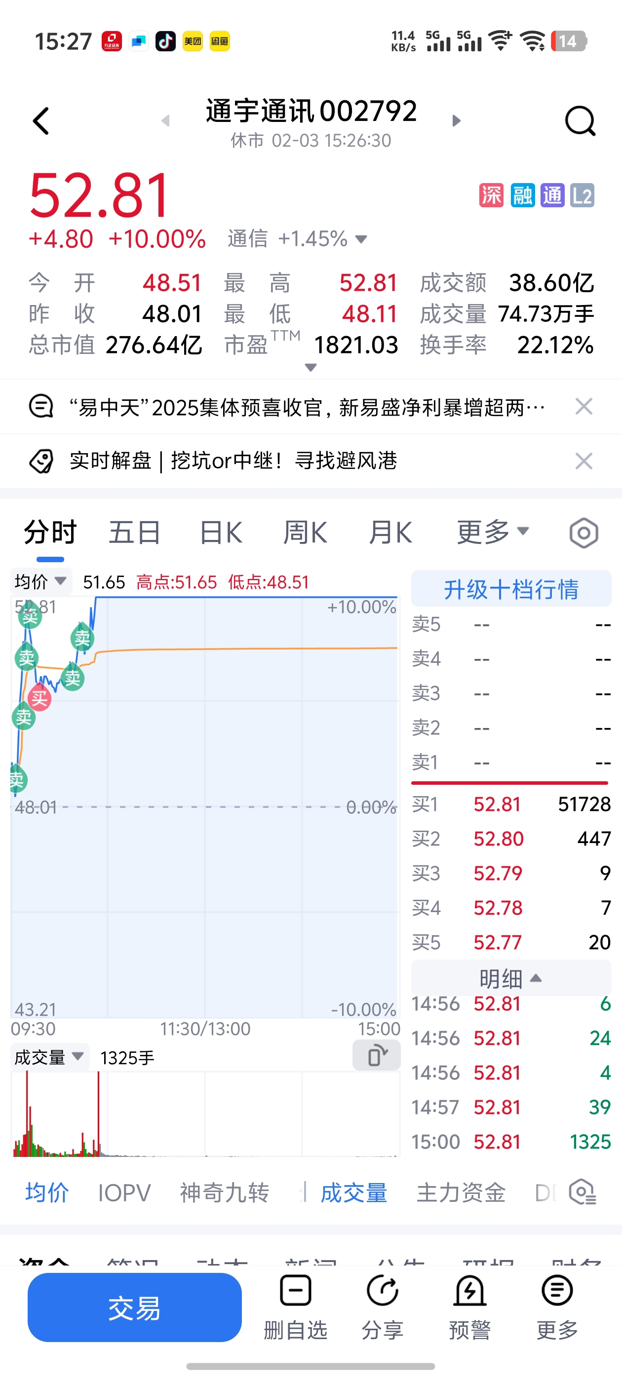 $通宇通讯(SZ002792)$ 蒜你今天比较硬 没砸下来 明天继续砸
