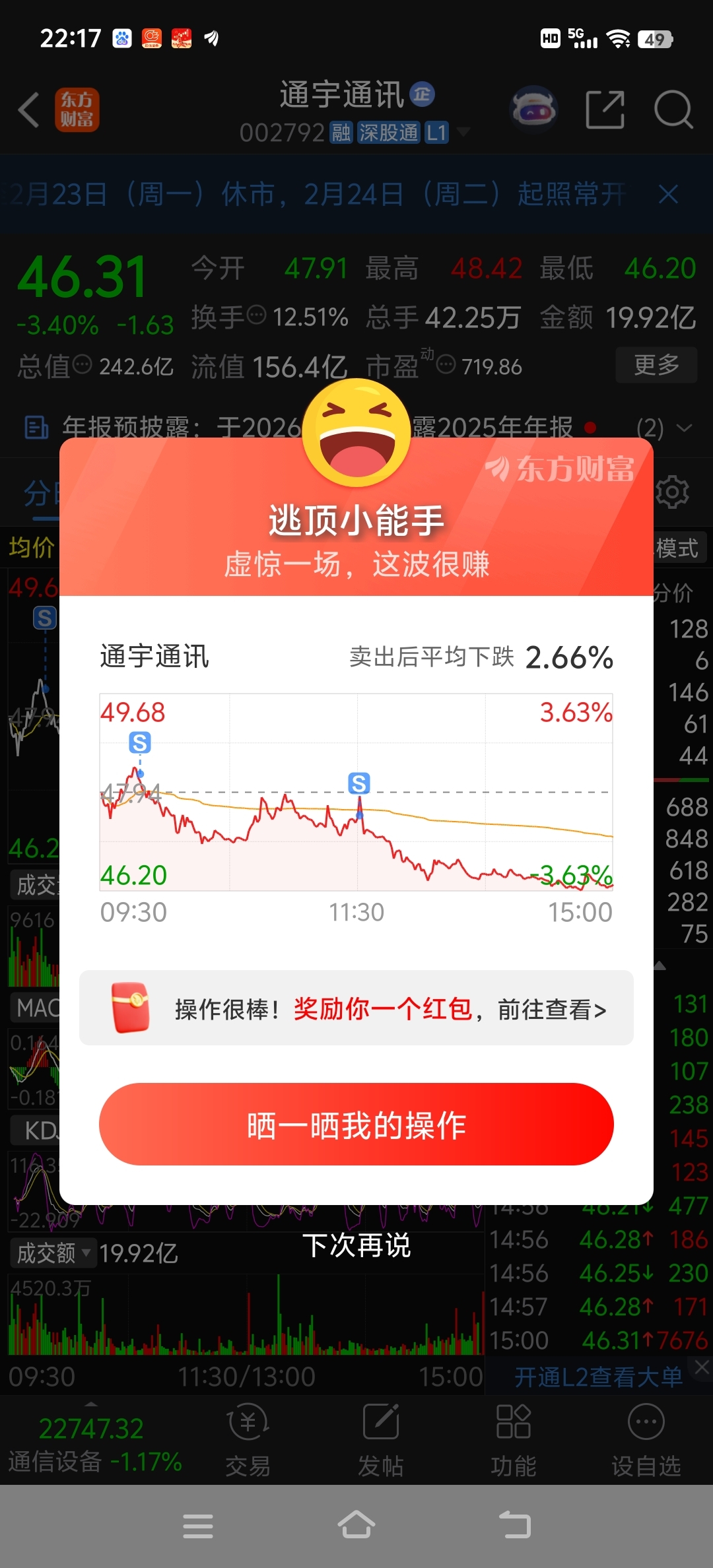 $通宇通讯(SZ002792)$ 持币过节
