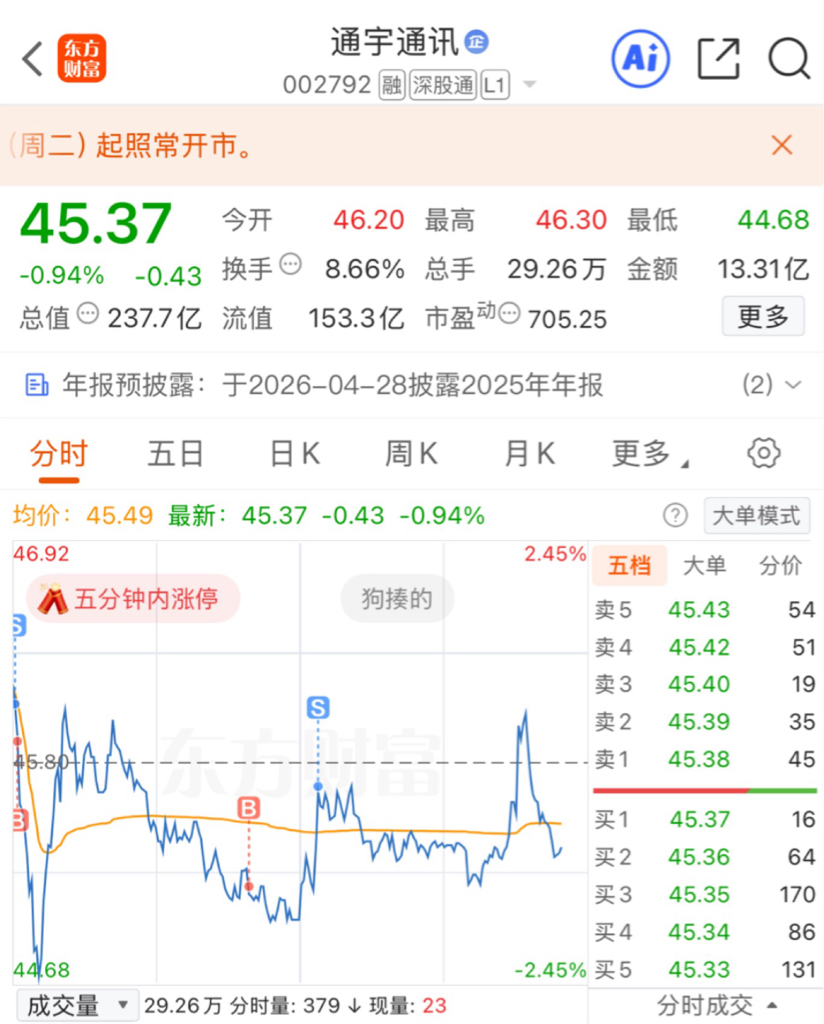 $通宇通讯(SZ002792)$ 收官,祝大家新年快乐
