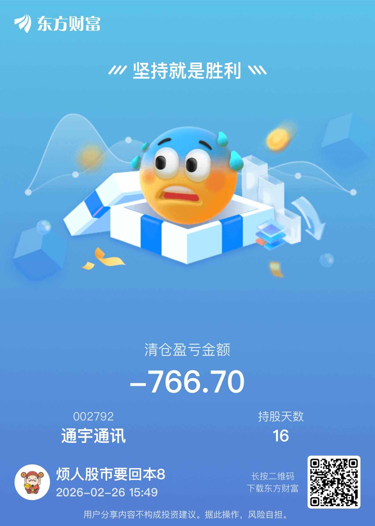$通宇通讯(SZ002792)$ 忍无可忍,放了16天,还亏766