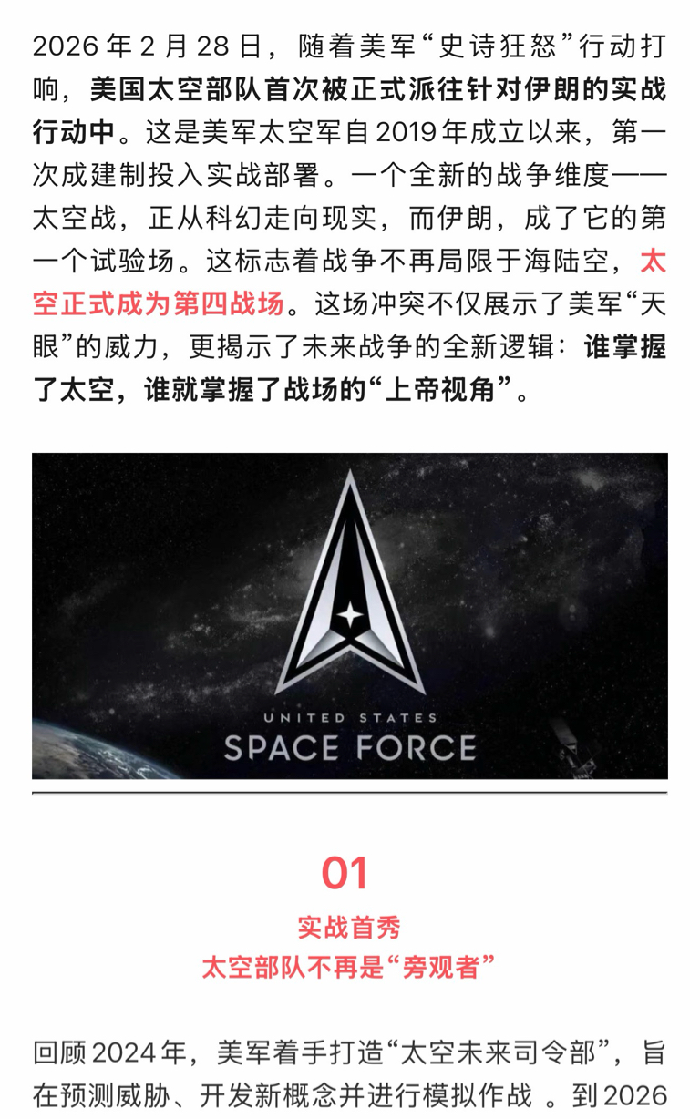 首次!美国宣布太空部队参战,“天眼”实战伊朗,全球战争模式彻底改写