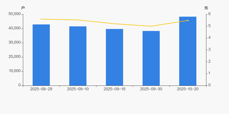 2025年8月29日至今,公司股东户数显著增长,区间涨幅为12.72%。2025年8月29日至2025年10月20日区间股价下降1.97%。