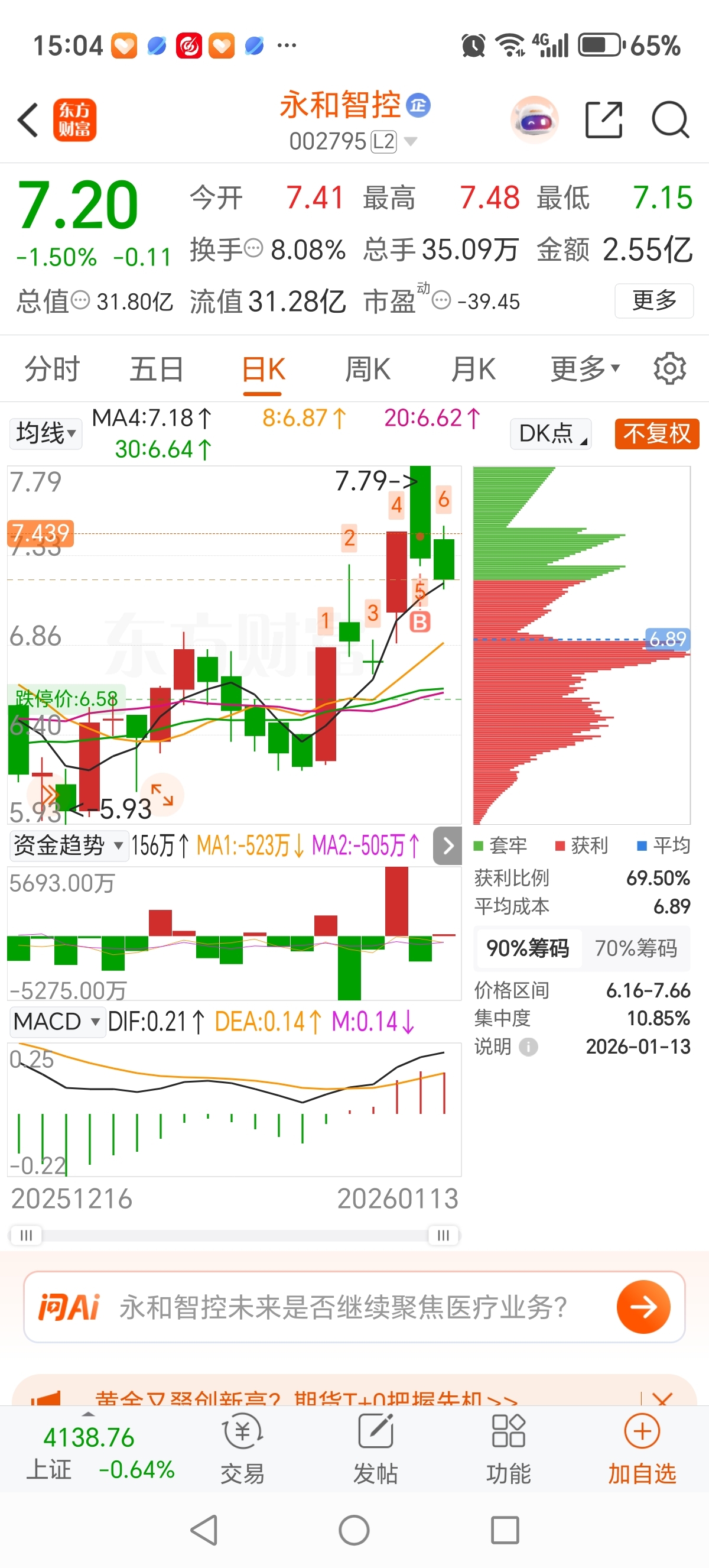 $永和智控(SZ002795)$ 完了,头肩顶,一买又买到山尖上,唉