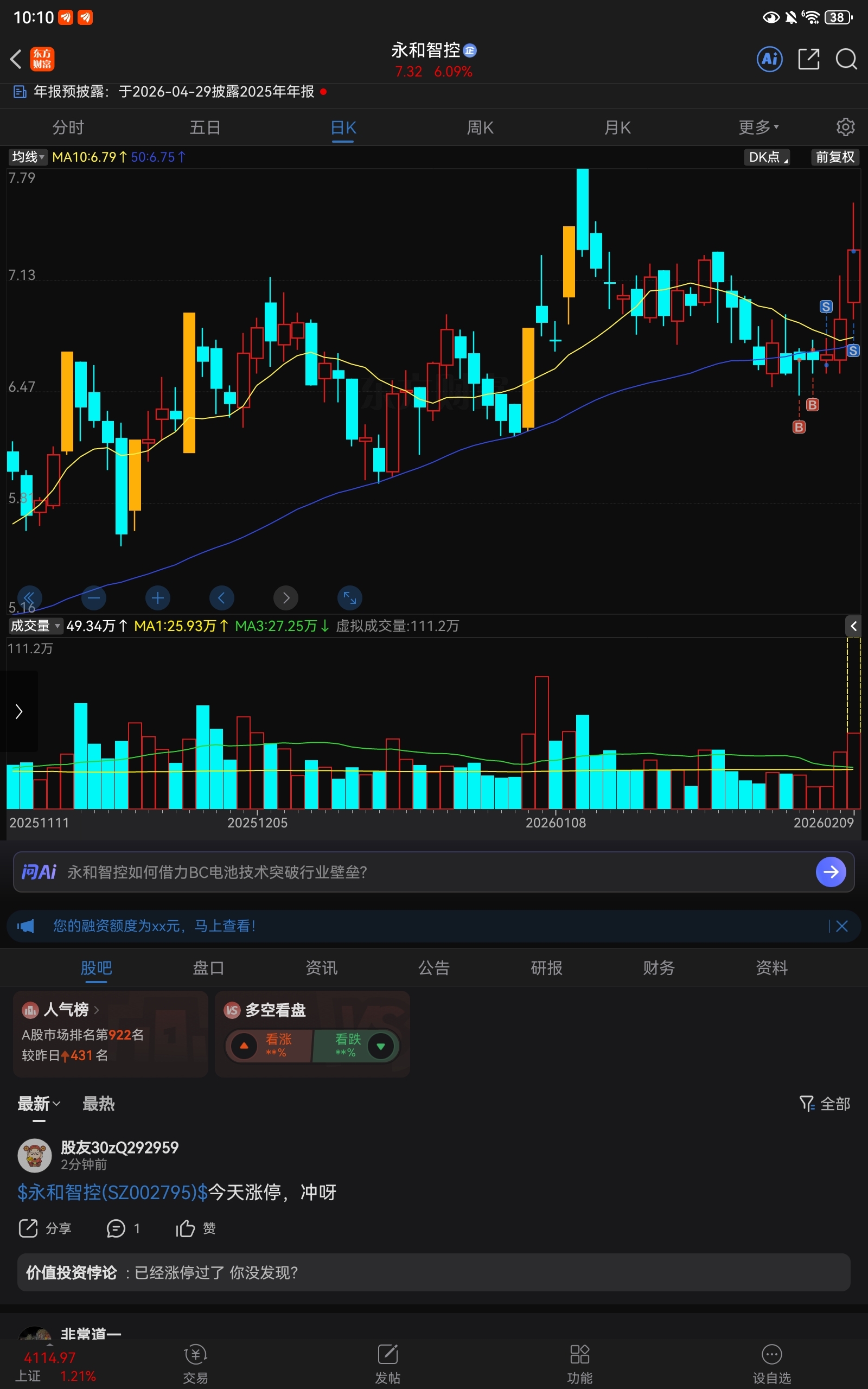 $永和智控(SZ002795)$ 就摸了一下板,回头再来