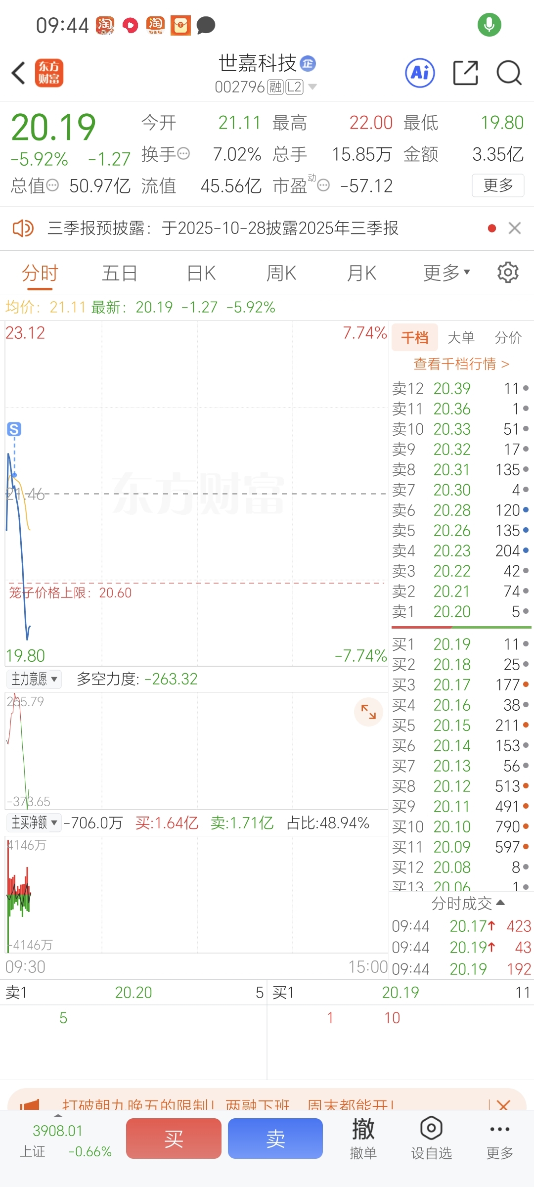 $世嘉科技(SZ002796)$ 刚卖出就大跌