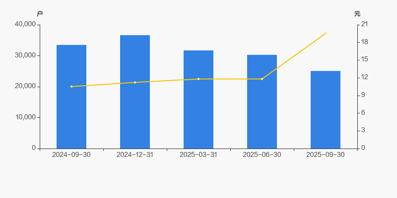 自2024年12月31日以来,公司股东户数连续3期下降,截至目前减幅为31.59%。2024年12月31日至2025年9月30日区间股价上涨73.89%。