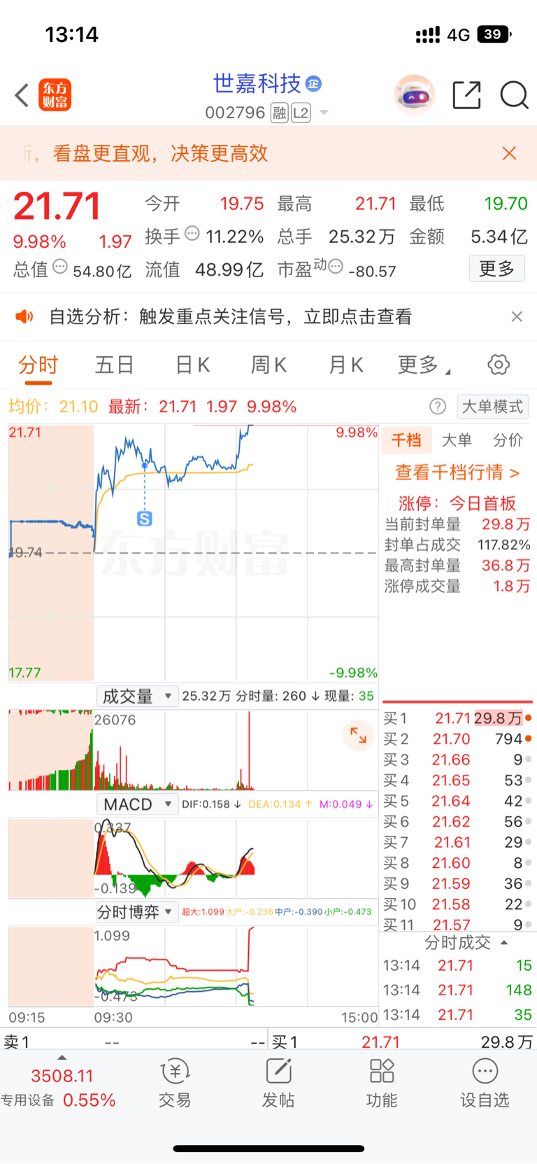 $世嘉科技(SZ002796)$ 又卖飞喽
