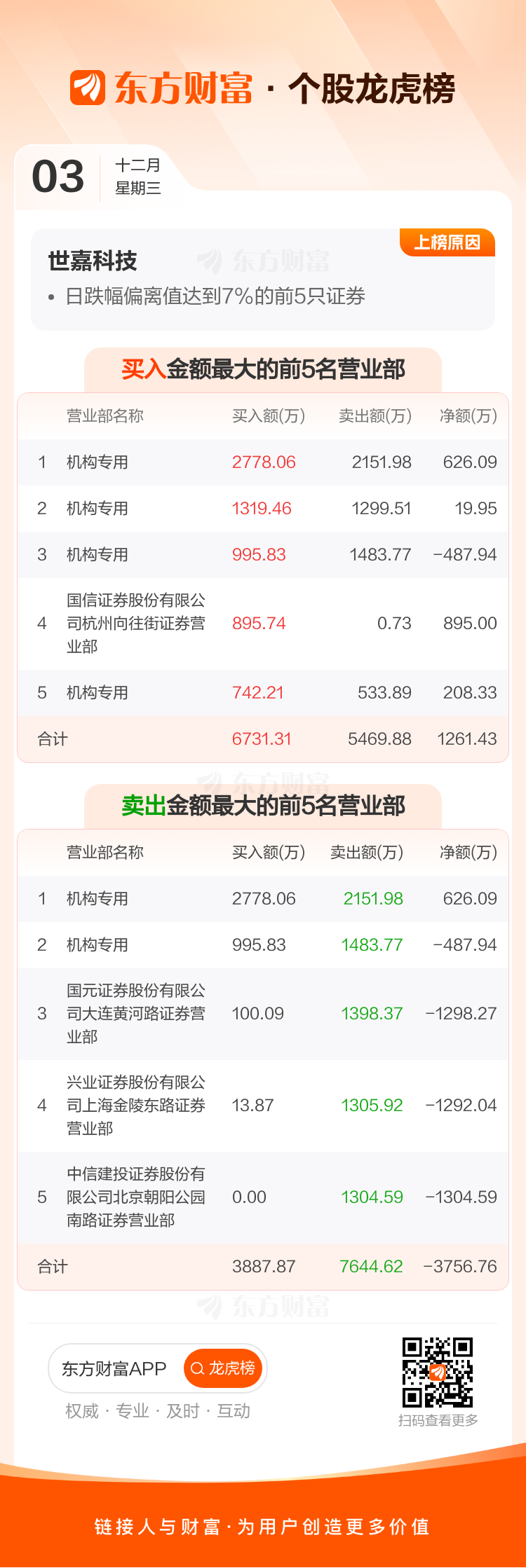 世嘉科技(002796)龙虎榜数据(12-03)