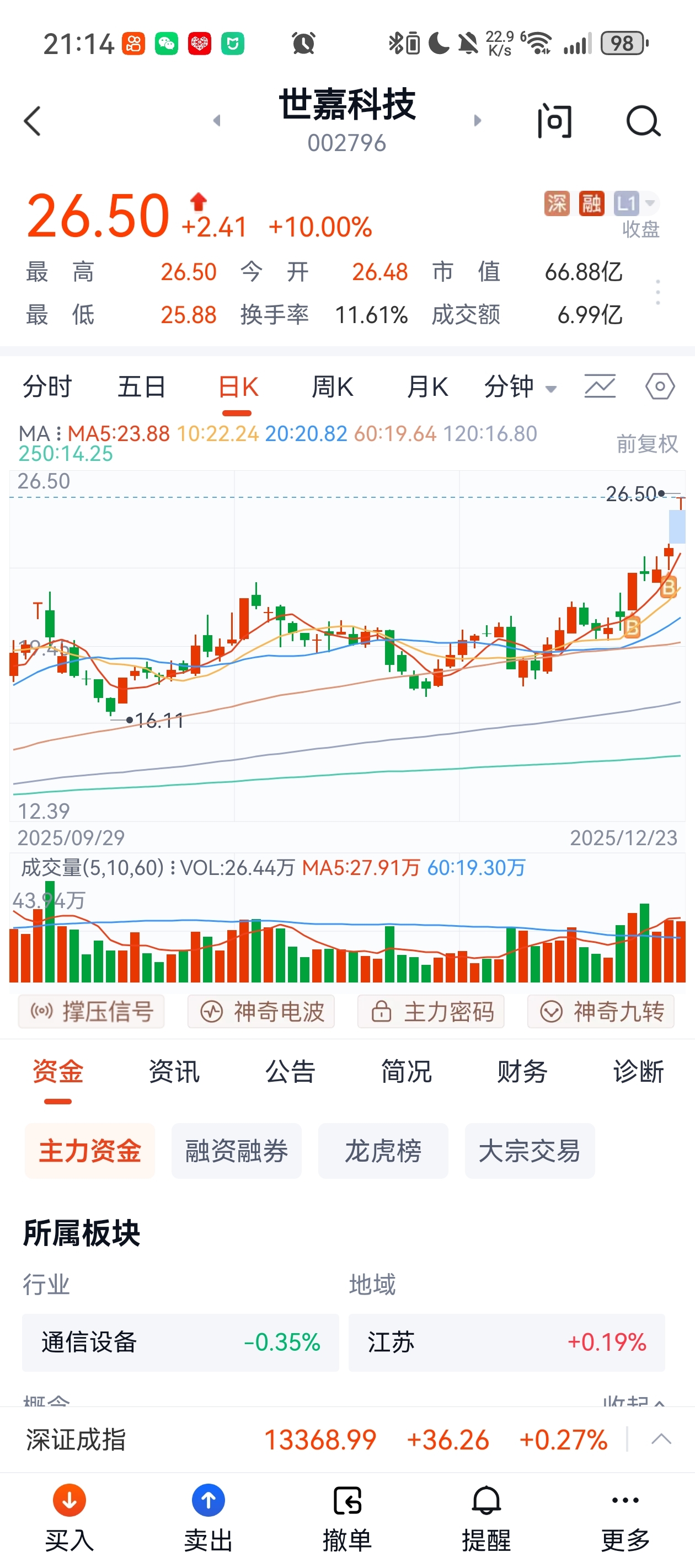 $世嘉科技(SZ002796)$ 最近做的有点顺!平均每周都有2-3天有涨停的!清仓浙江世宝赚了42个点!昨天加仓世嘉今天又涨停