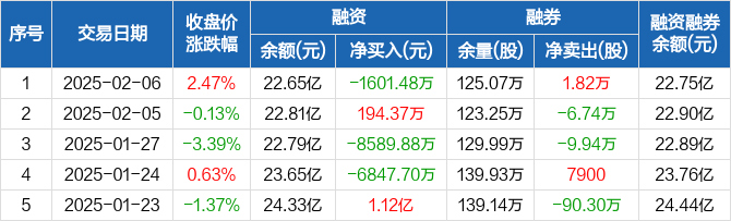 第一创业:融资净偿还1601.48万元,融资余额22.65亿元(02-06)
