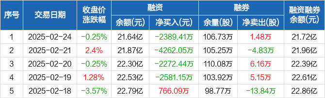 第一创业:连续4日融资净偿还累计1.15亿元(02-24)
