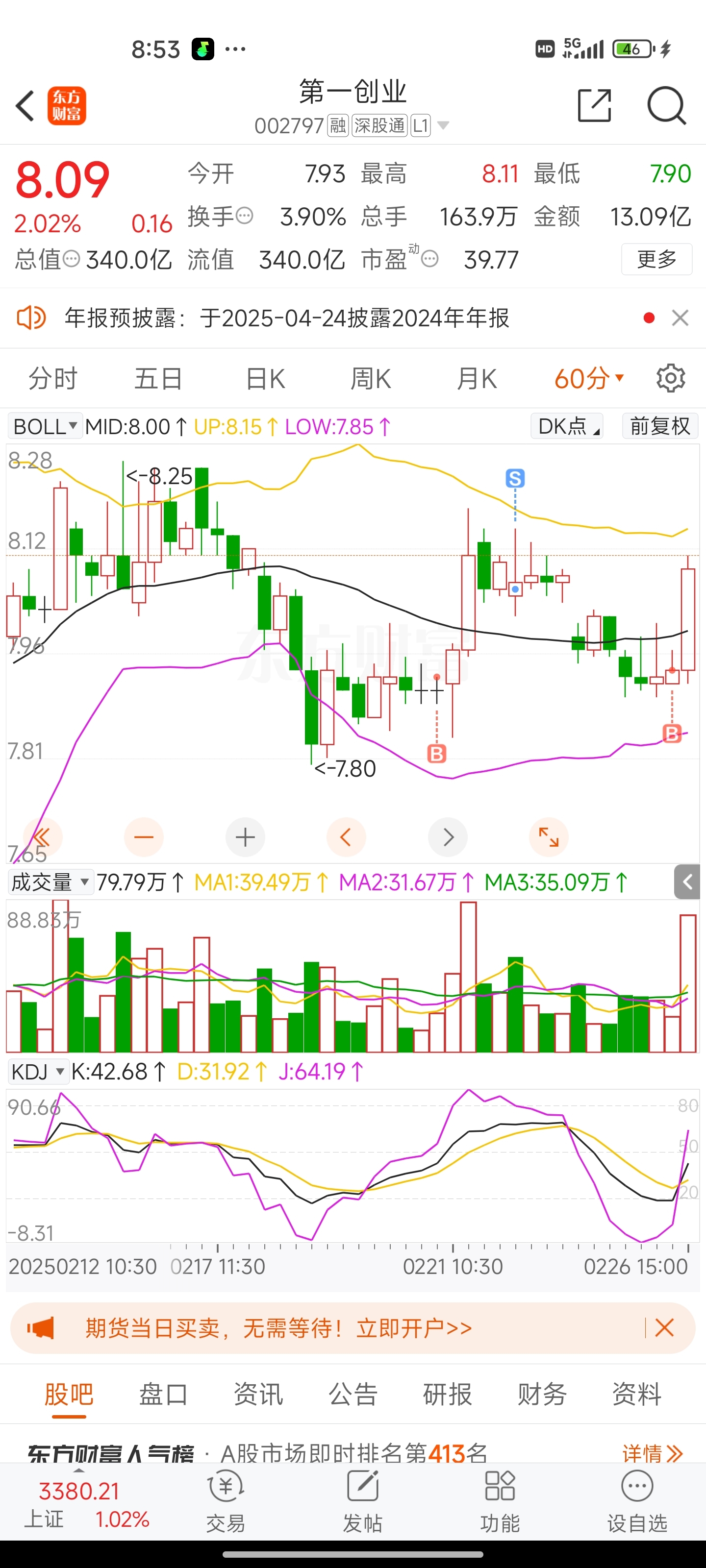 $第一创业(SZ002797)$ 看明天给不给机会走
