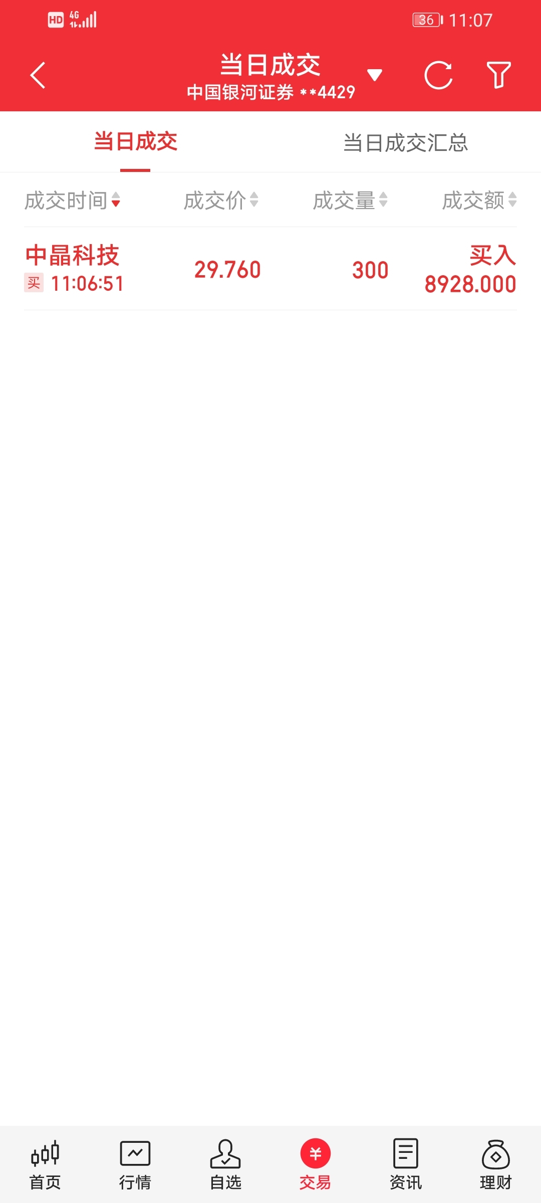 今天打算在29.8元把买入的300股中晶科技出掉,出不掉就算了,不赔钱卖,