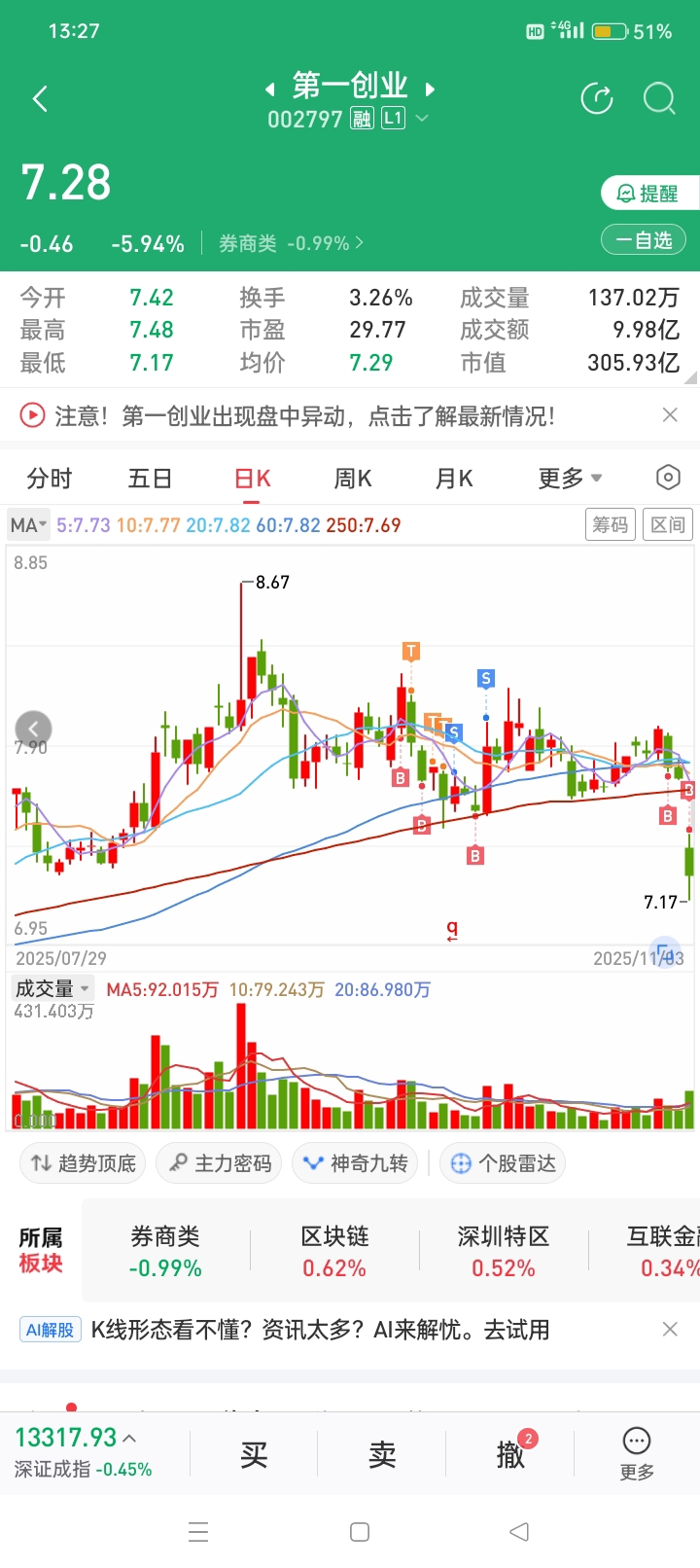 $第一创业(SZ002797)$ @立长志 有一单7.81元的没卖。