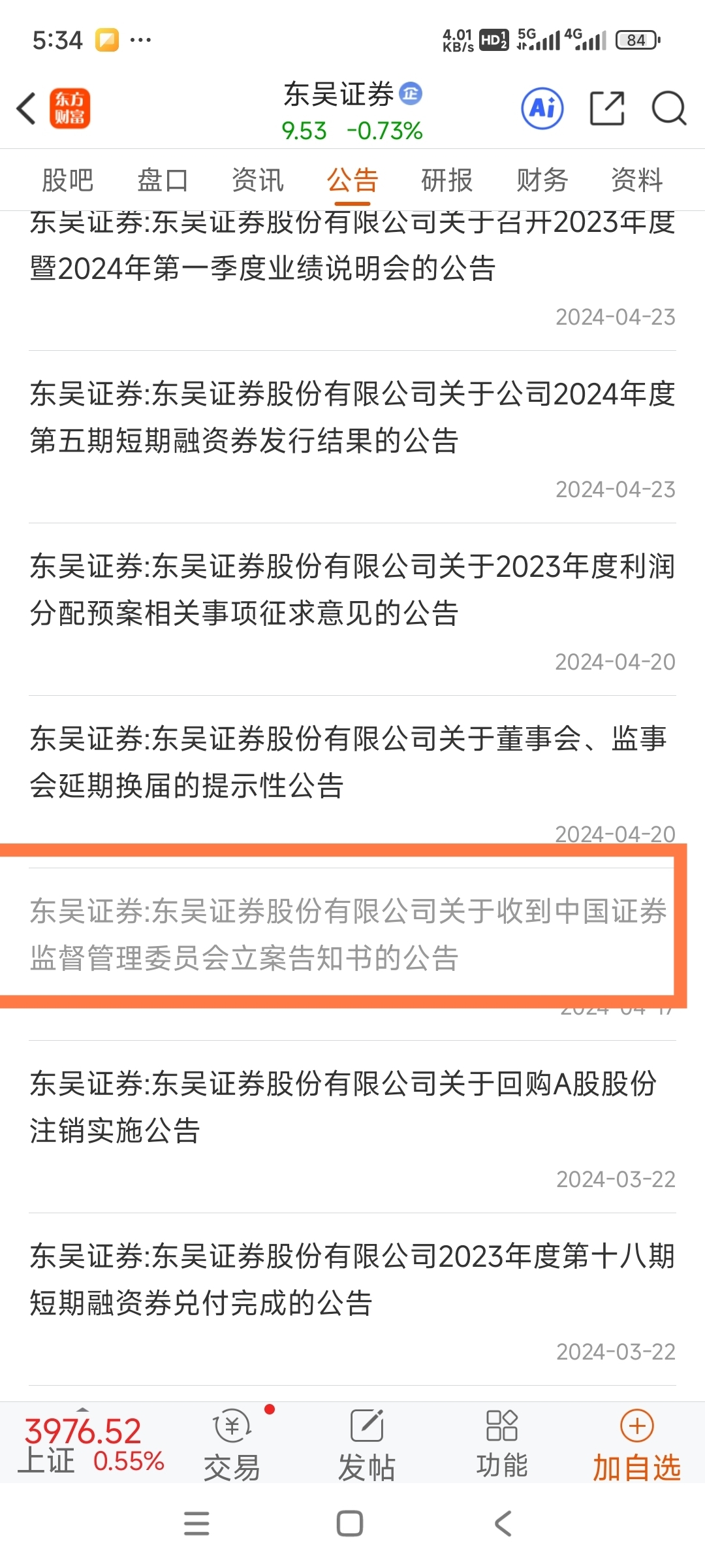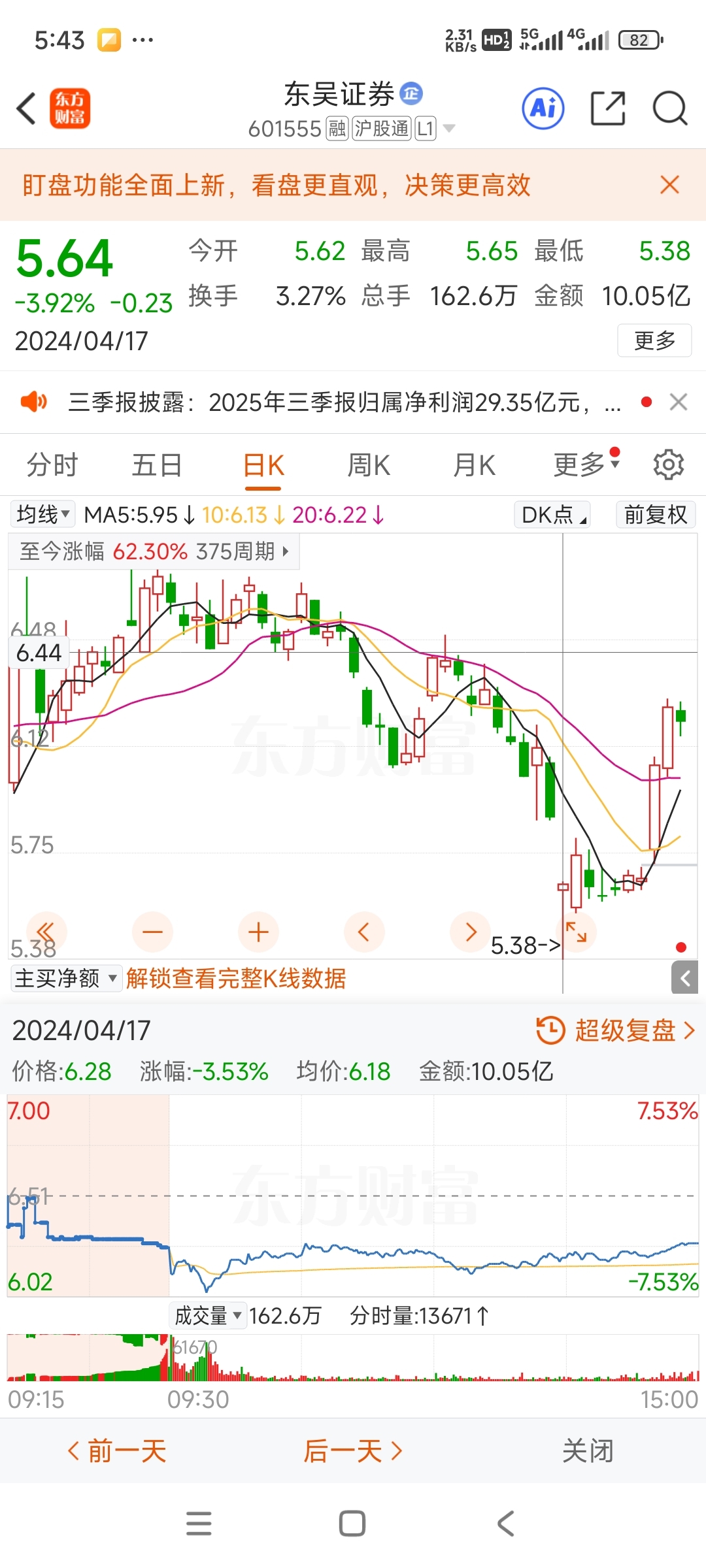 这真是拉~圾股!同样是立案调查,2024年东吴证券从最多跌七个多点拉到不到四个点