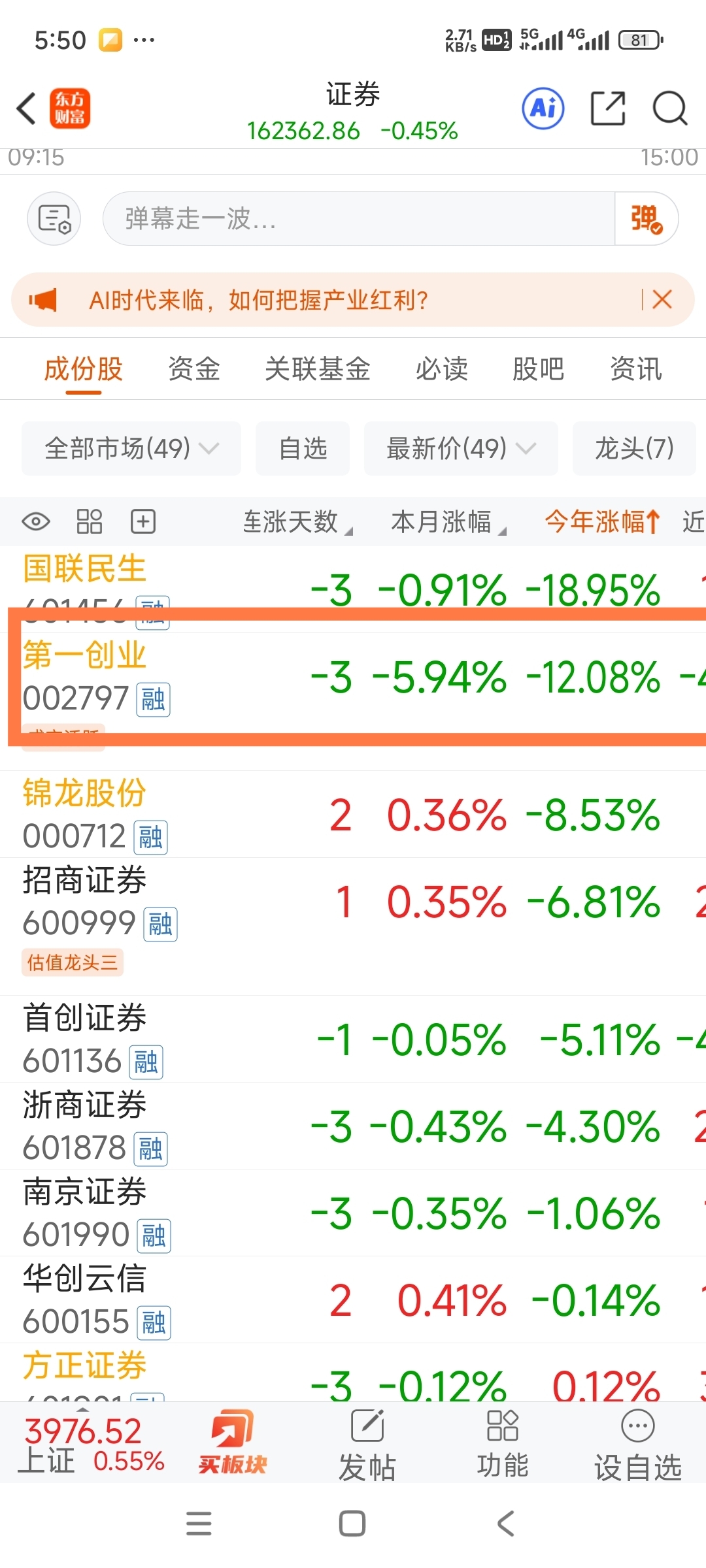这真是拉~圾股!同样是立案调查,2024年东吴证券从最多跌七个多点拉到不到四个点,第二天还涨了不少!这个垃~圾今天最多也是跌了七个多点,牛市加大盘这么好都拉不上来!再加上今年板块倒数第二,主力真是日了勾了!