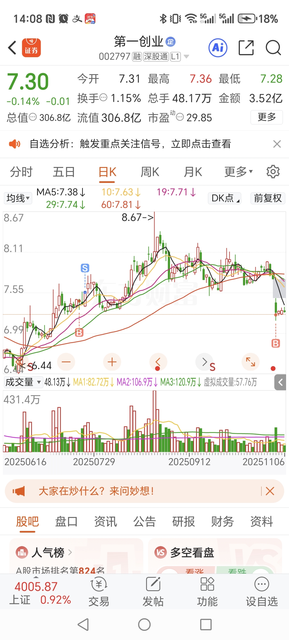 $第一创业(SZ002797)$ 刚才没看到,今天到735我就走,给点面子主力,明天就不是这个价了