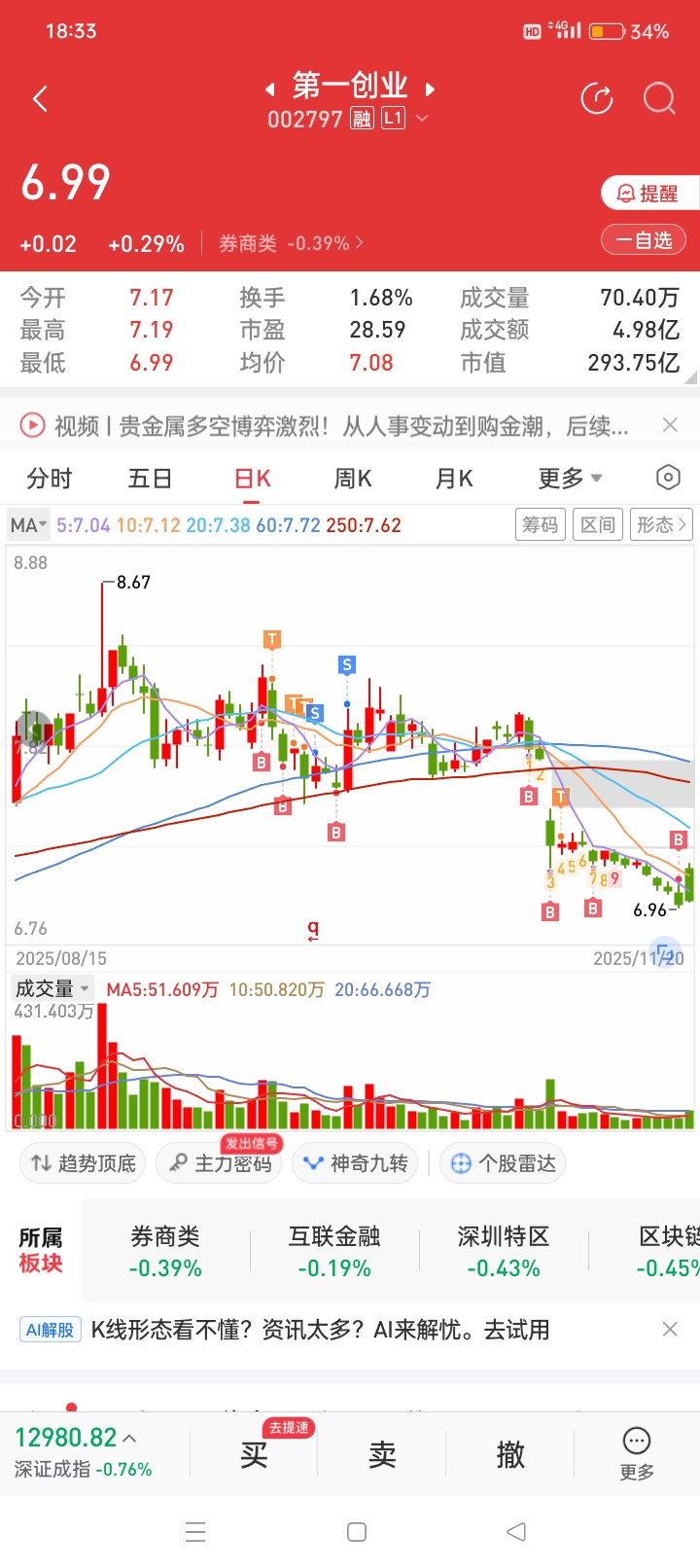 @腼腆羞涩的苗墨烽第一创业7块相对来说是安全的,该价位处于历史均价。我不着急交易
