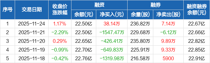第一创业:融资净买入38.14万元,融资余额22.5亿元(11-24)
