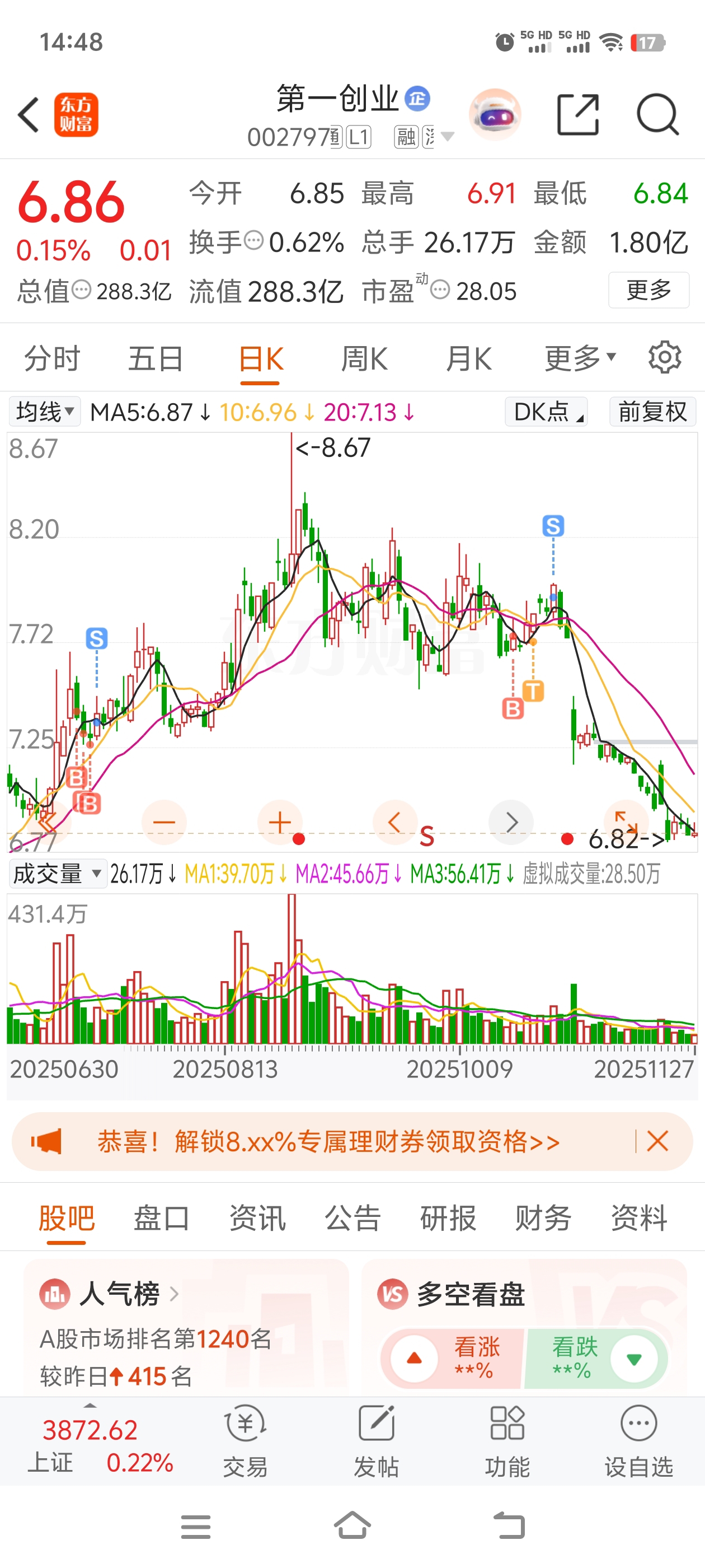 $第一创业(SZ002797)$ 什么时候才能启稳啊,还好这个跑得快,证券跌跌不休?!