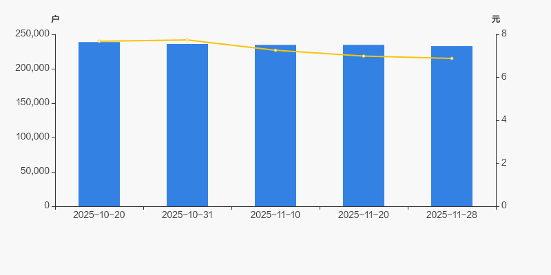 2025年10月20日至今,公司股东户数有所下降,区间跌幅为2.45%。2025年10月20日至2025年11月28日区间股价下降10.42%。