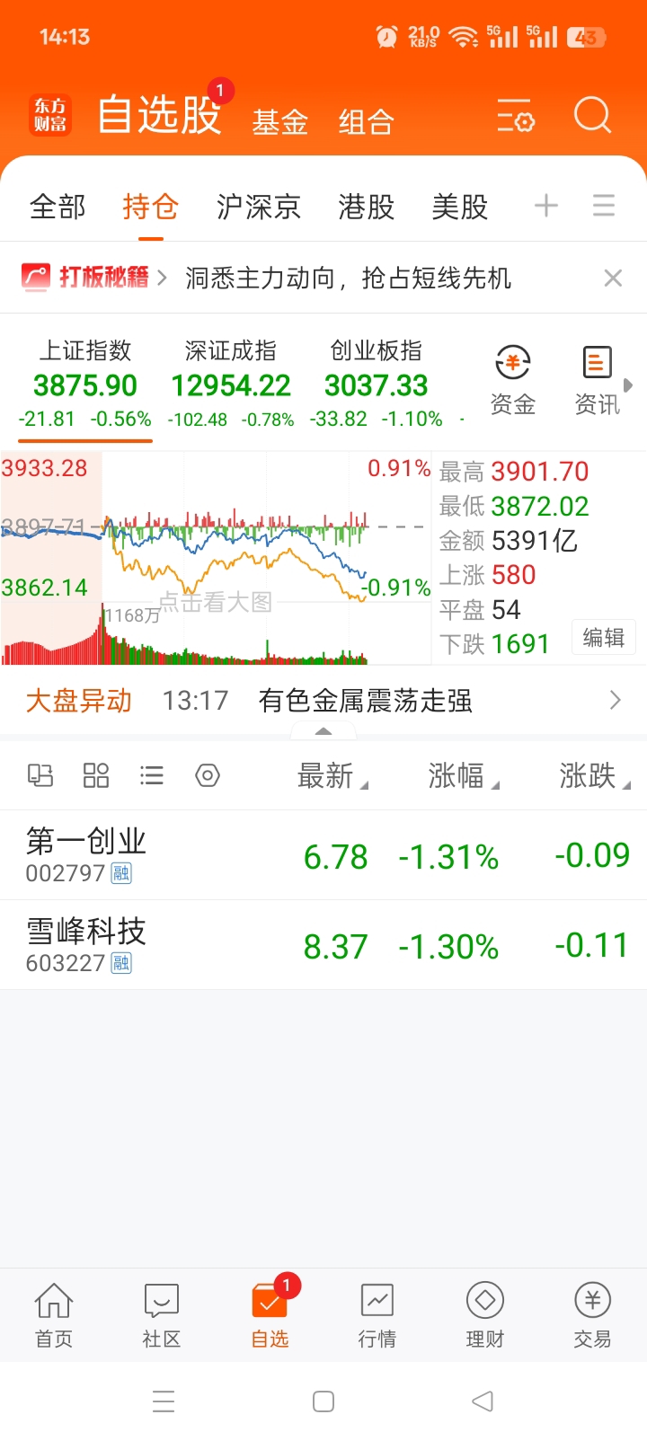 $第一创业(SZ002797)$ $雪峰科技(SH603227)$ 我还能说什么?跟着一起退市算了,补仓就被套,一万入市现在十万了,过年都不敢回家了