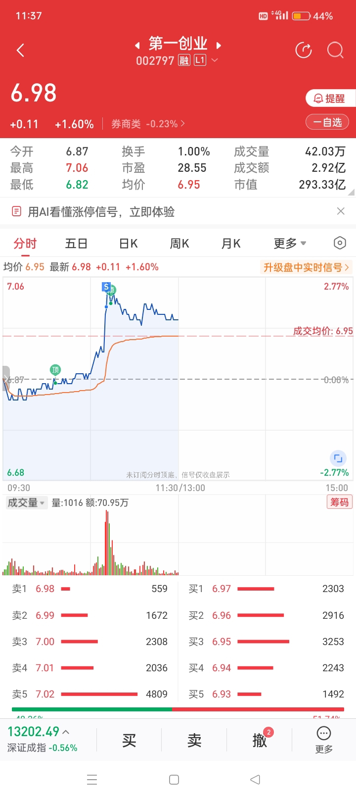 $第一创业(SZ002797)$ 7.01元把昨天6.91元买的筹码卖了。