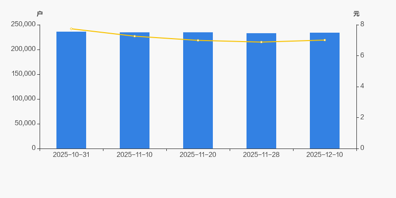截至2025年12月10日,公司最新总股本为42.02亿股,且均为流通股。户均持有流通股数量为1.8万股,较上期略有下降;户均流通市值12.59万元。