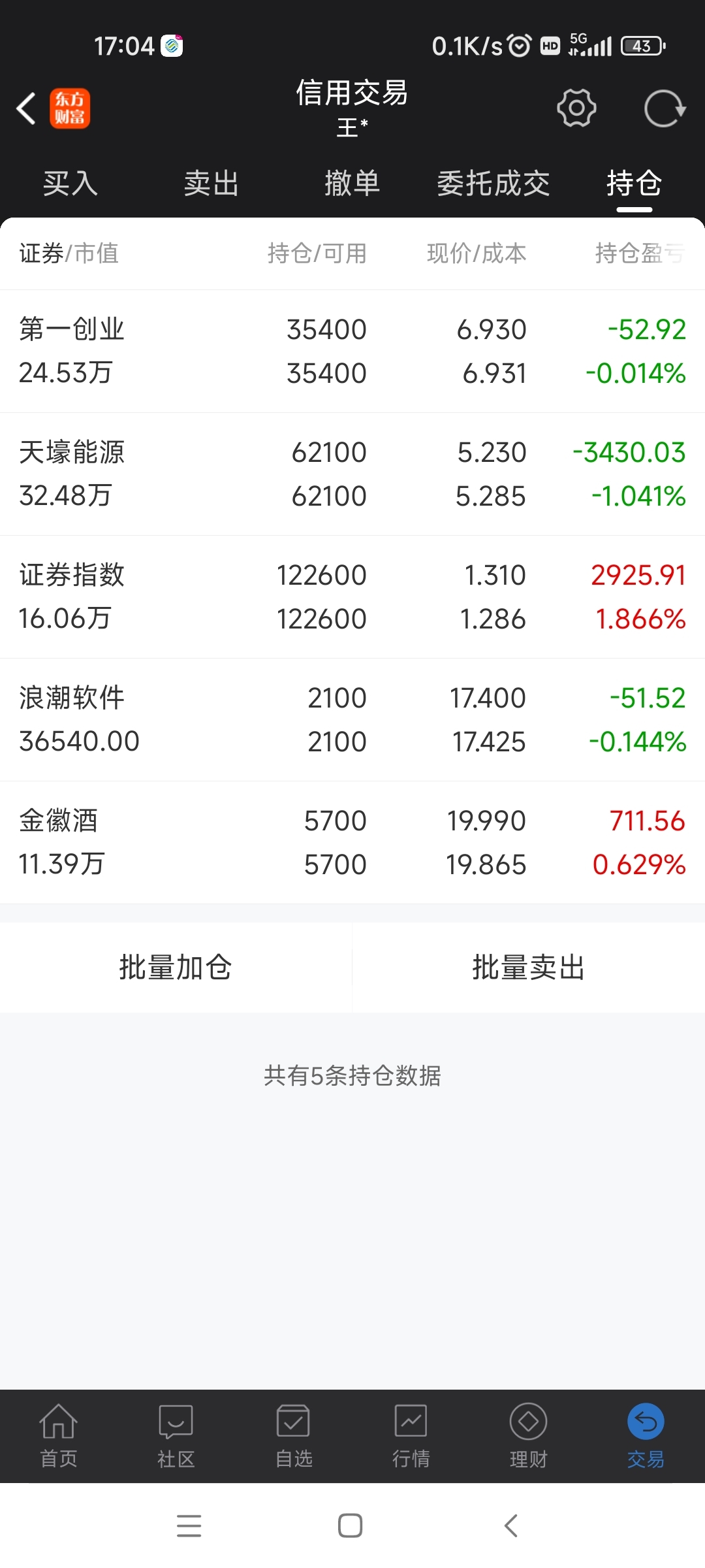 还亏52块钱!今天早上应该加仓就回本了!希望明天不要太拉胯了!