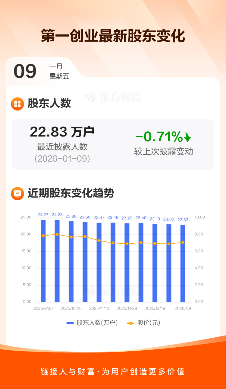 第一创业:截至1月9日最新股东户数22.83万户,较上期减少0.71%