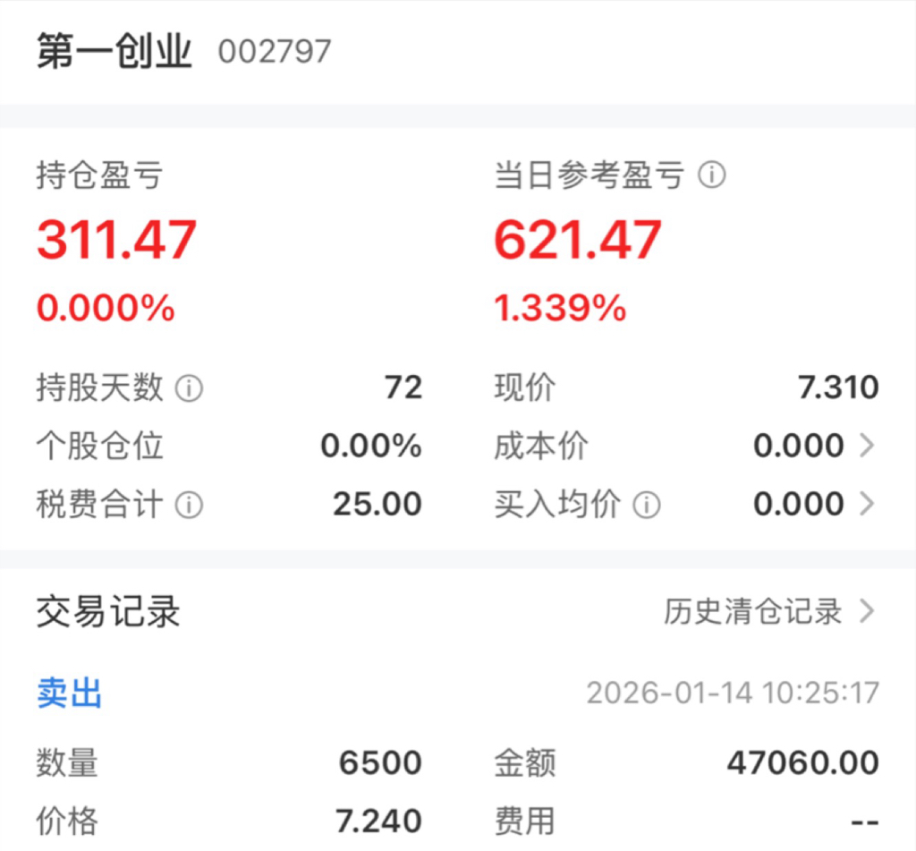 $第一创业(SZ002797)$ 一卖就涨72天赚了300走了