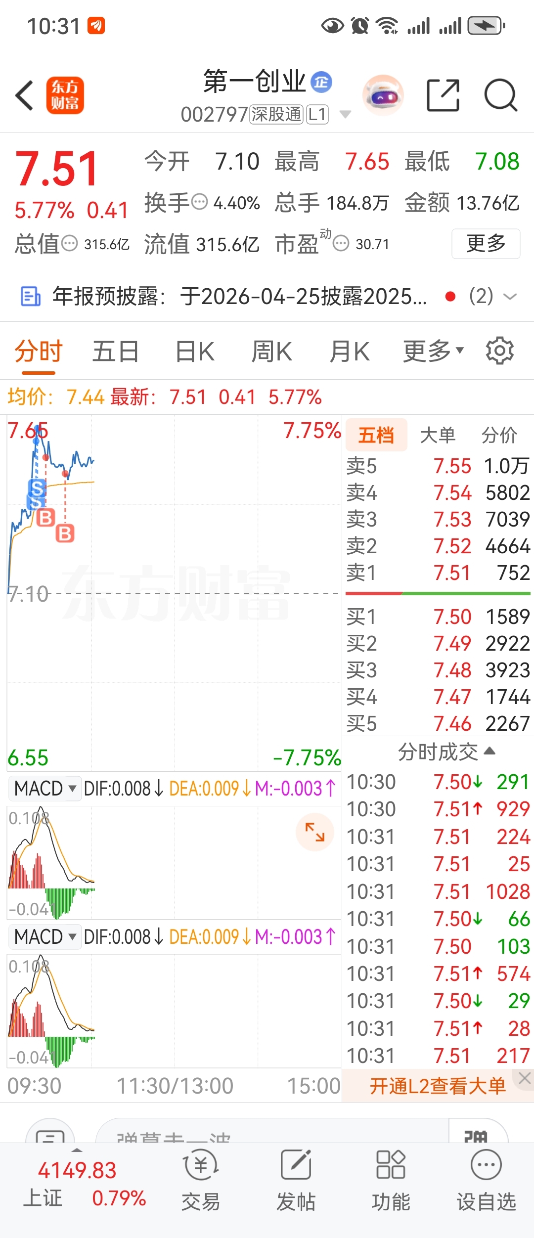 $第一创业(SZ002797)$ 难得今日板块第一!