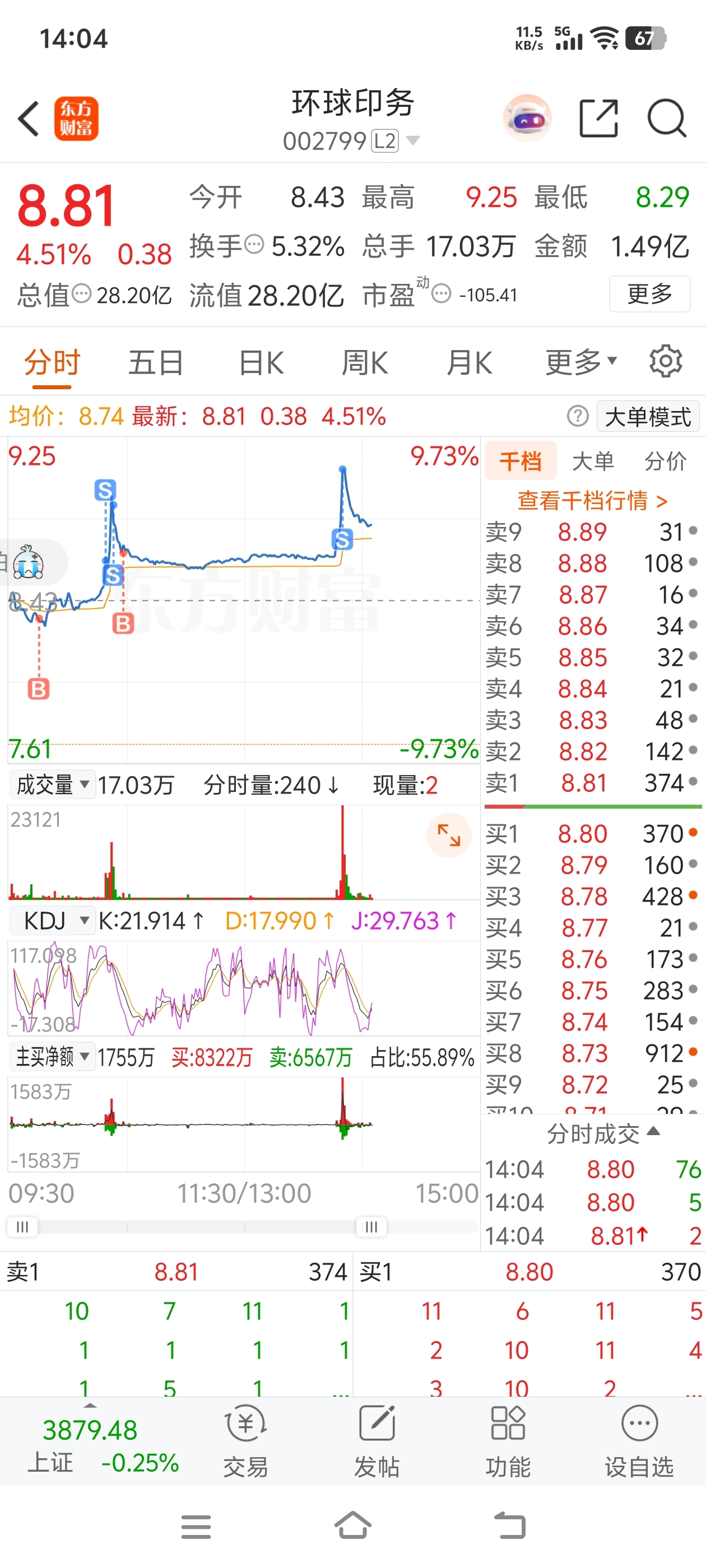 $环球印务(SZ002799)$ 成本被我搞到7.7了,不加仓也不减仓了,除非跌破我的成本