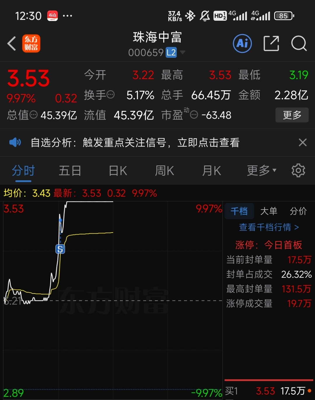 珠海中富涨停了,你还磨磨唧唧