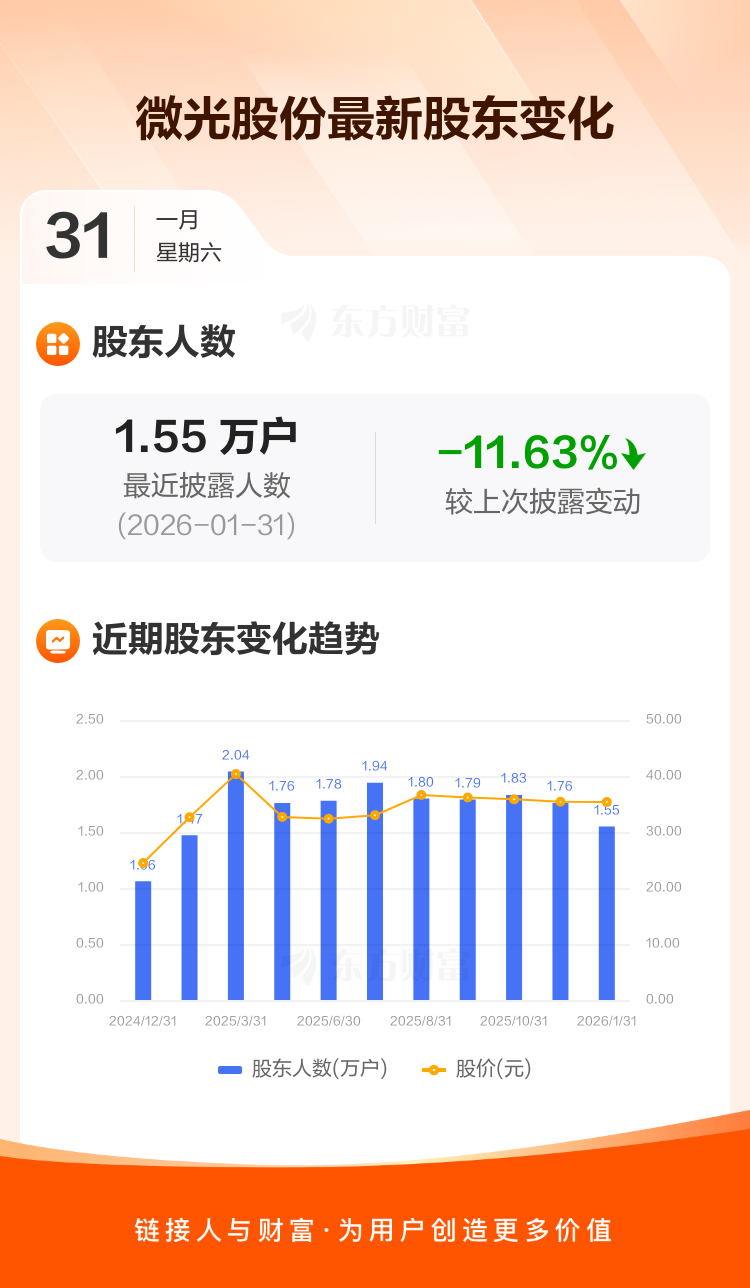 微光股份:截至1月31日最新股东户数1.55万户,较上期减少11.63%