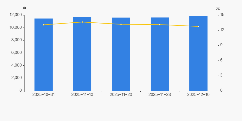 截至2025年12月10日,公司最新流通股本为1.82亿股。户均持有流通股数量由上期的1.56万股下降至1.53万股,户均流通市值19.51万元。