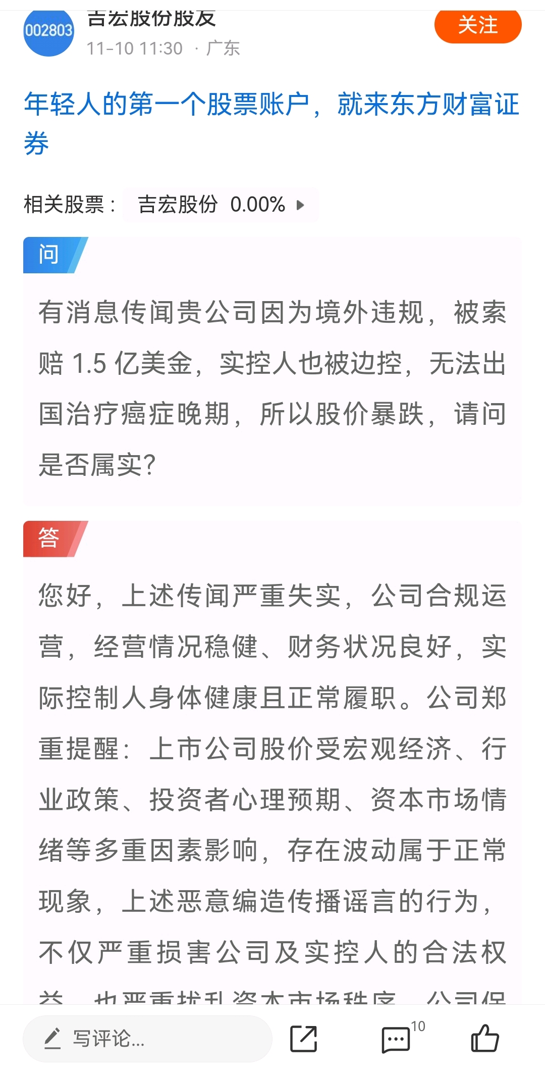 温馨提示: 1.根据《证券法》规定,禁止编造、传播虚假信息或者误导性信息,扰乱证券市场;2.用户在本社区发表的所有资料、言论等仅代表个人观点,与本网站立场无关,不对您构成任何投资建议。用户应基于自己的独立判断,自行决定证券投资并承担相应风险。《东方财富社区管理规定》