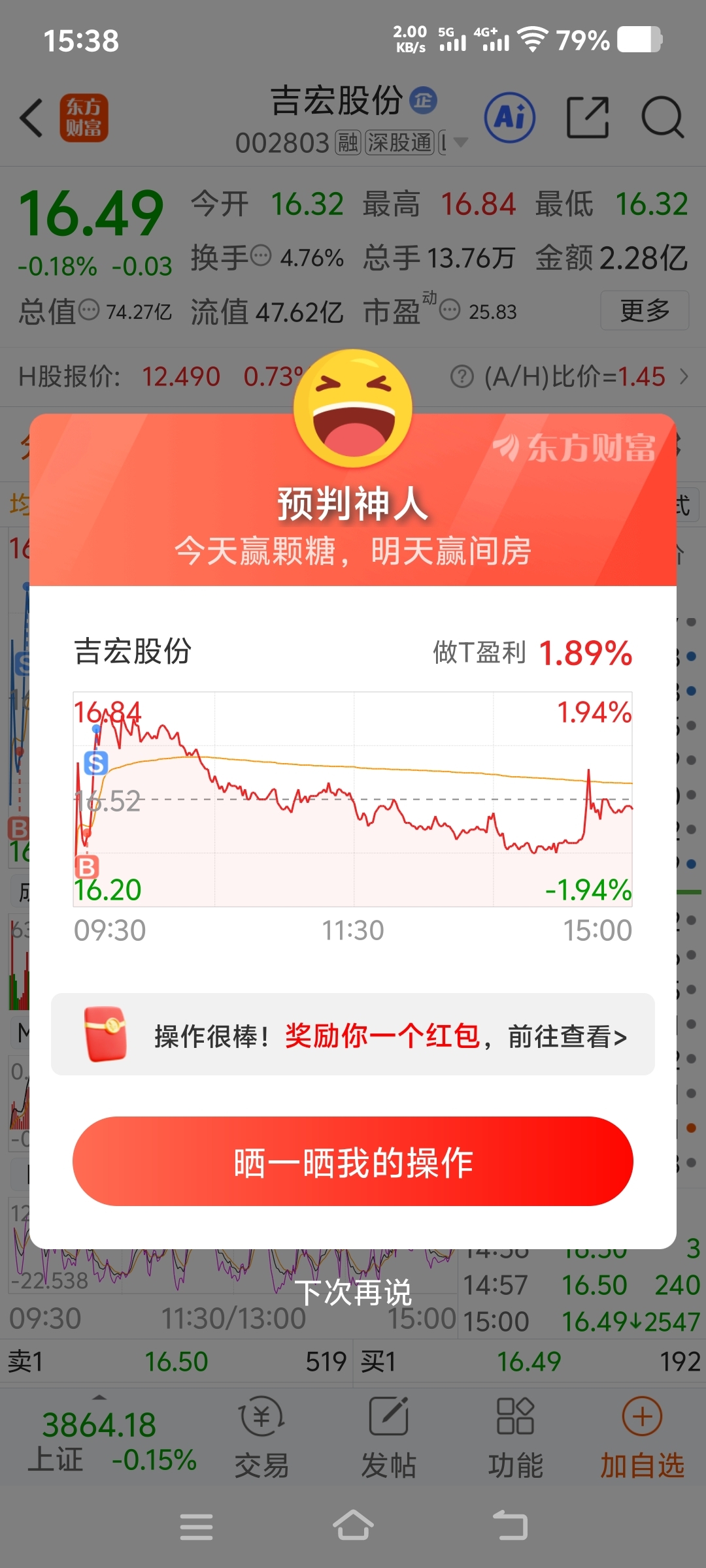 没想到,收盘绿了。底仓犹在,做T依然有利润