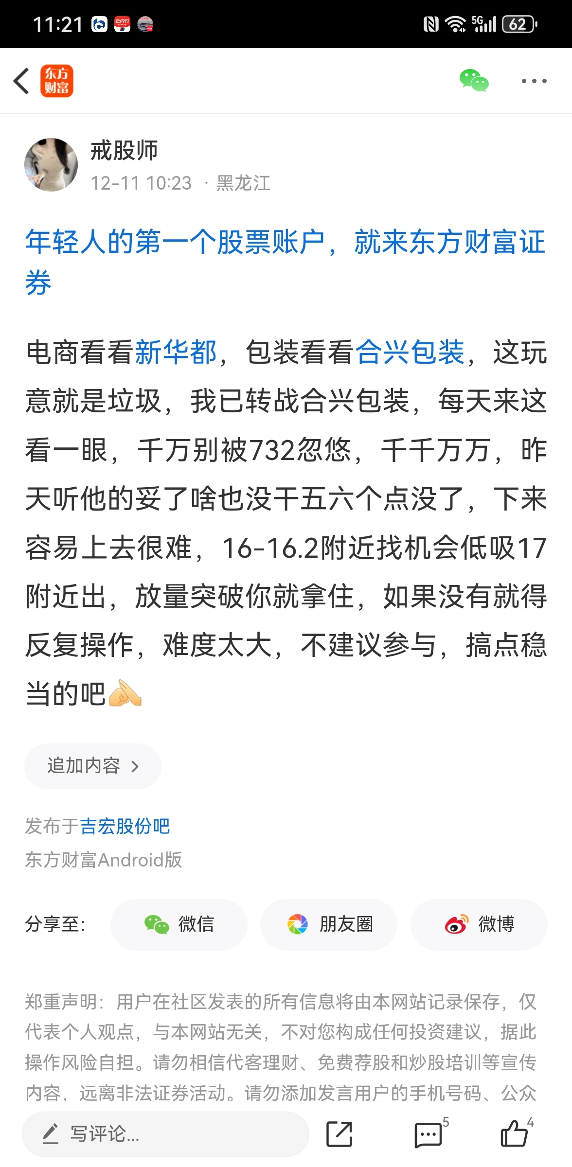 温馨提示: 1.根据《证券法》规定,禁止编造、传播虚假信息或者误导性信息,扰乱证券市场;2.用户在本社区发表的所有资料、言论等仅代表个人观点,与本网站立场无关,不对您构成任何投资建议。用户应基于自己的独立判断,自行决定证券投资并承担相应风险。《东方财富社区管理规定》