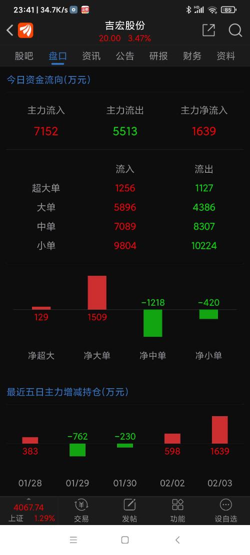 吉宏股份等九股,今日资金净流入一览。
