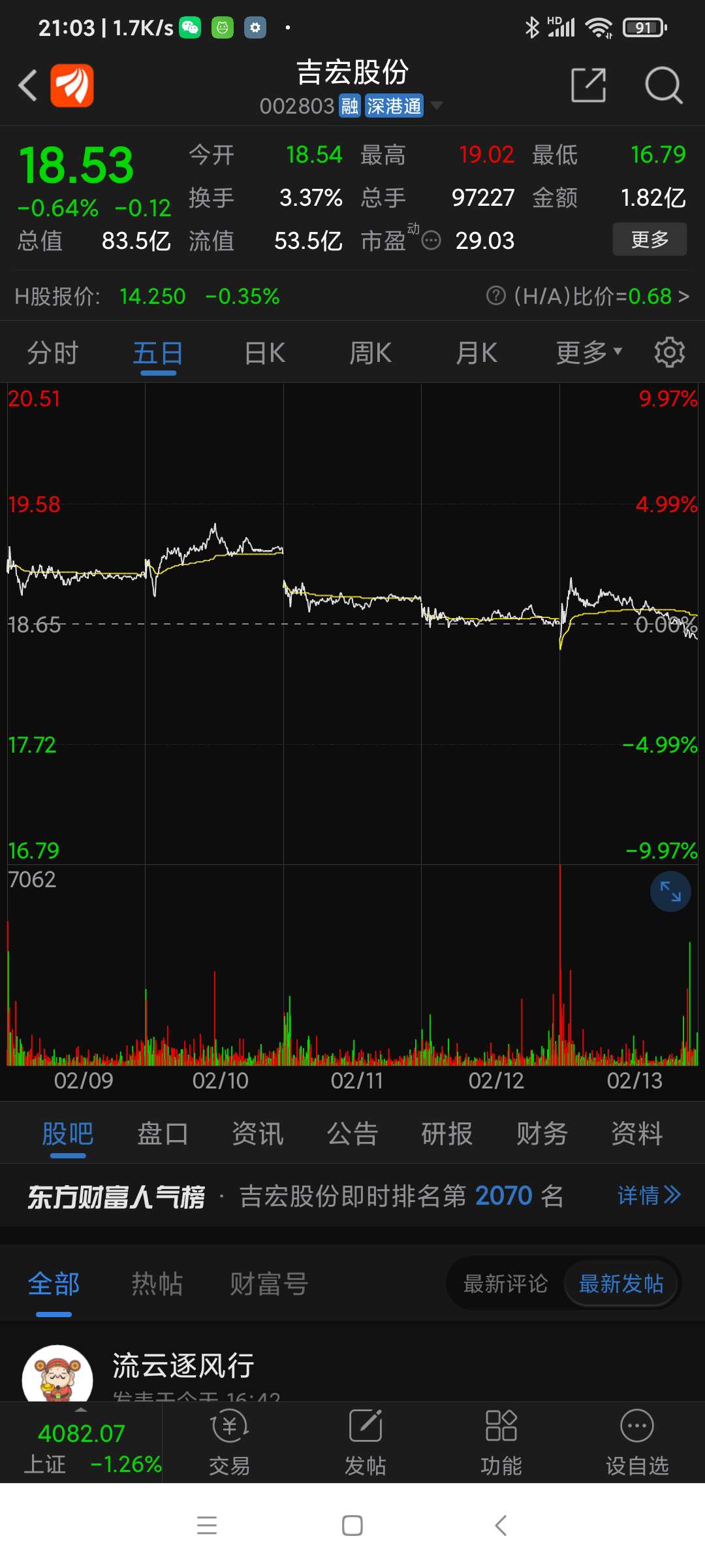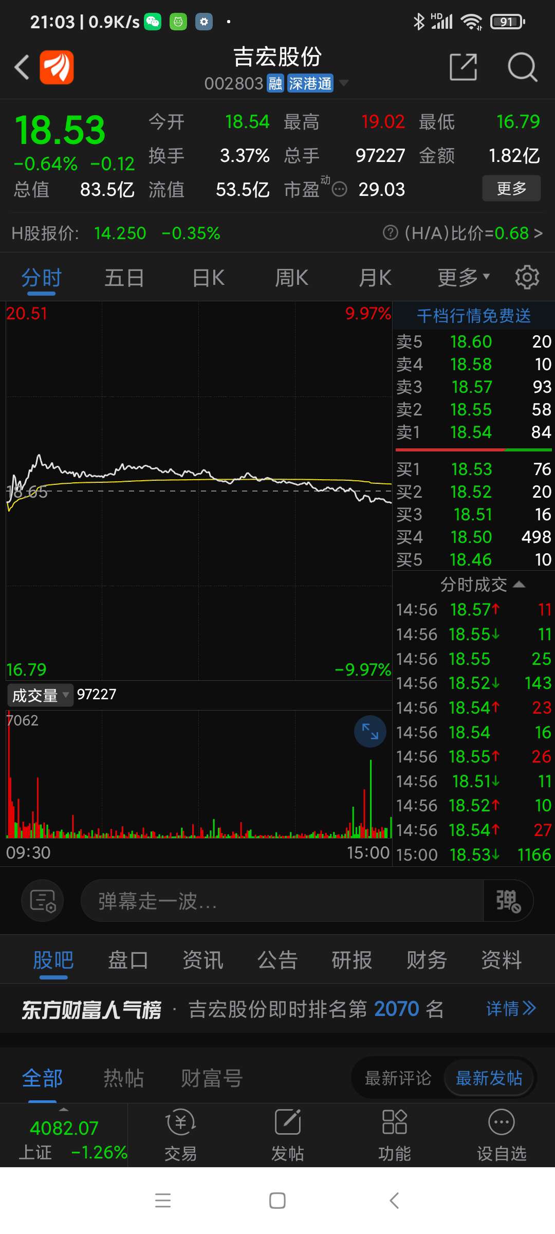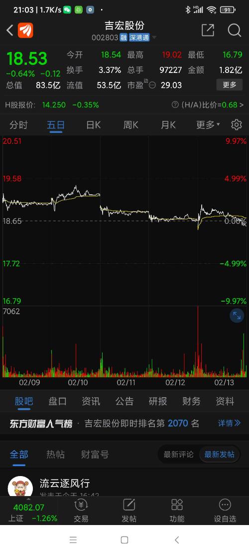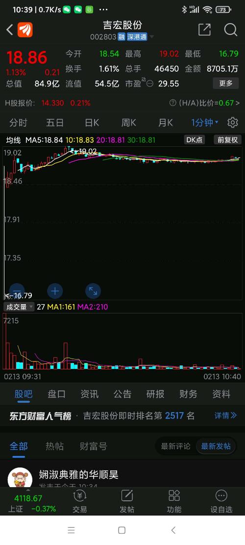 吉宏股份今日走势。