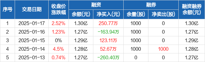 丰元股份:融资净买入250.77万元,融资余额1.3亿元(01-17)
