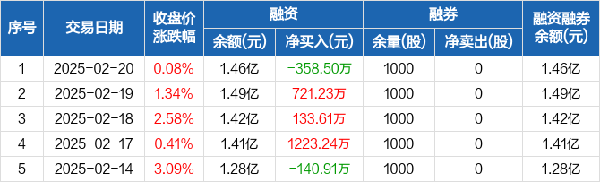 丰元股份:融资净偿还358.5万元,融资余额1.46亿元(02-20)