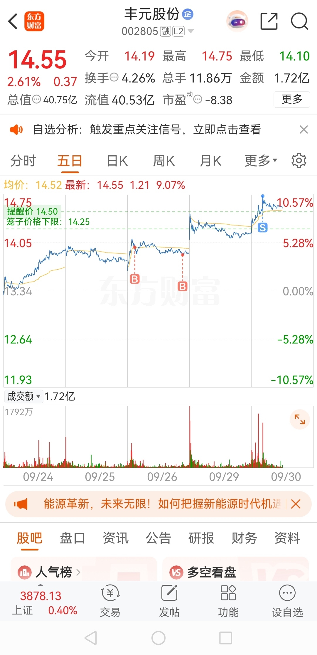 $丰元股份(SZ002805)$ 节后低吸回来!