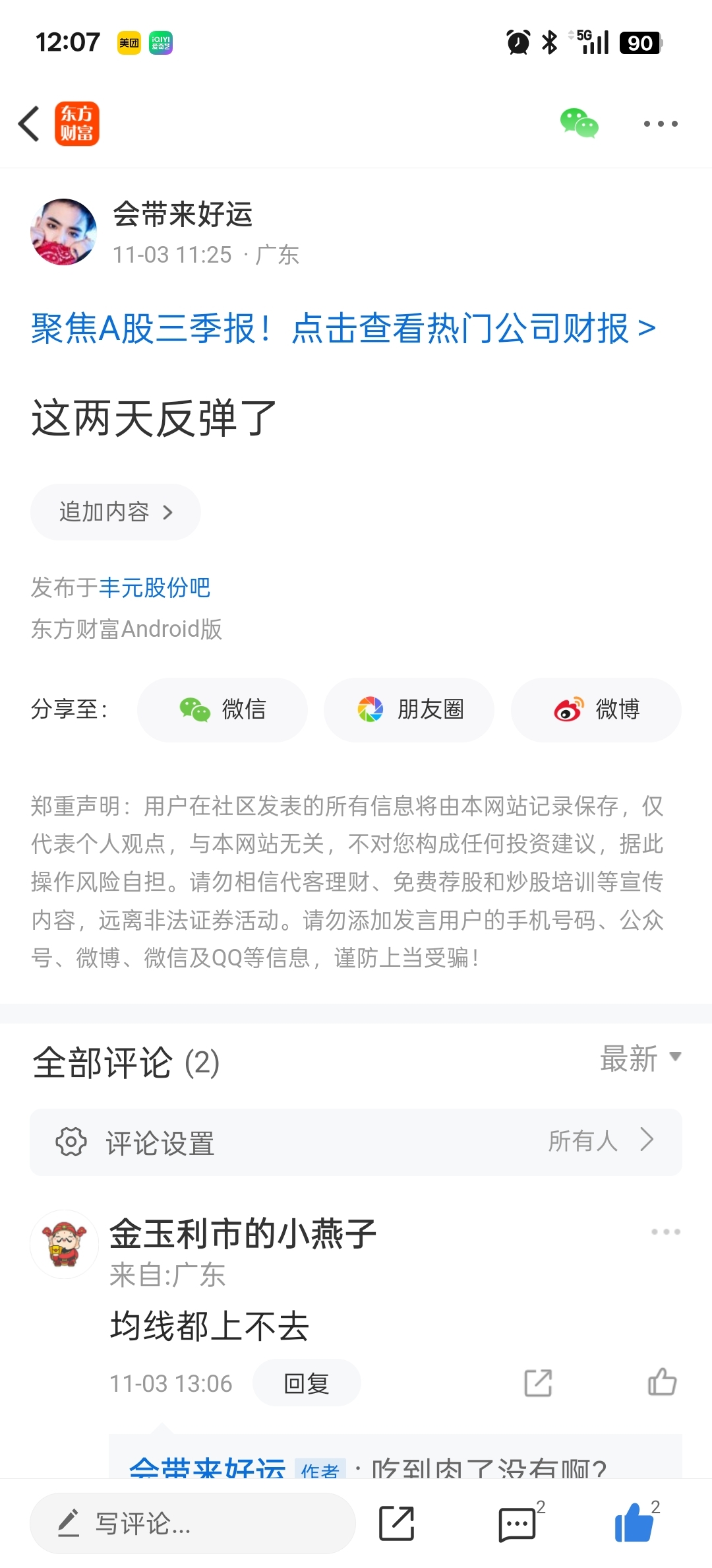 温馨提示: 1.根据《证券法》规定,禁止编造、传播虚假信息或者误导性信息,扰乱证券市场;2.用户在本社区发表的所有资料、言论等仅代表个人观点,与本网站立场无关,不对您构成任何投资建议。用户应基于自己的独立判断,自行决定证券投资并承担相应风险。《东方财富社区管理规定》
