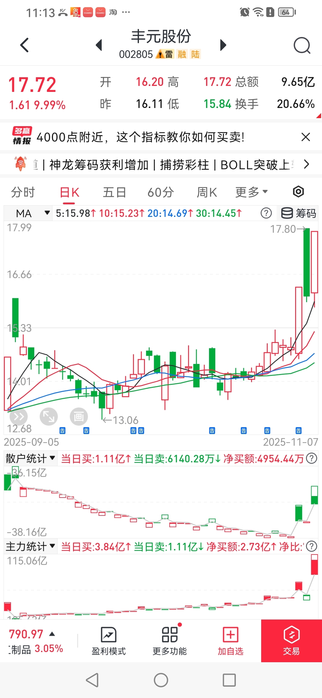 $丰元股份(SZ002805)$ 经传多赢手机版数据短线王123元年费,关键是跟买跟卖专用量化的机构,不会看盘,他有软件对他来说没有用,他的思维在跟领导性量化,注定不会涨。散户T+1根本不可能突破的,散户T+0的话,这个量化才能能二次加仓吃货,不然就是拉不高。不可能突破的,控盘开盘价可以是大单,也可以是专用量化机构和量化庄