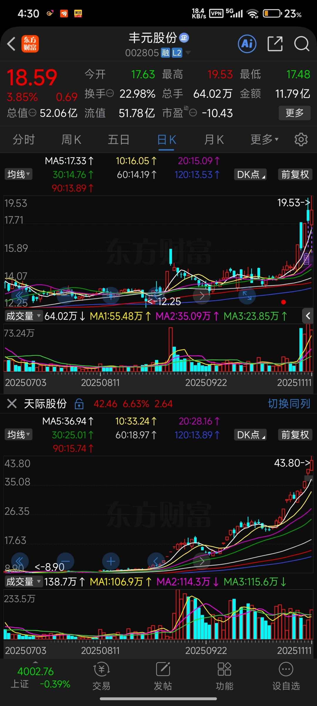 $丰元股份(SZ002805)$ 当你拿不住觉得行情到顶的时候,不妨看看天际股份