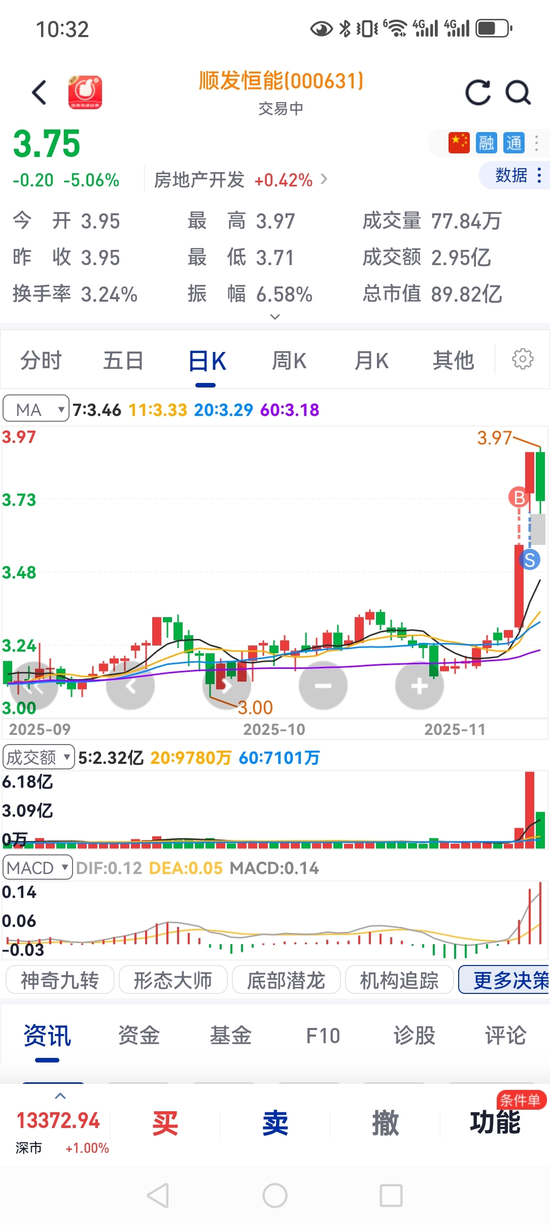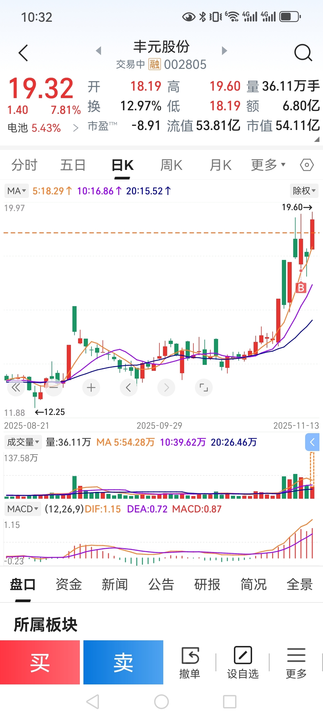 周二买的三个股,顺发拿了2个涨停走了,金房没波动扔了,丰元股份等会走了。