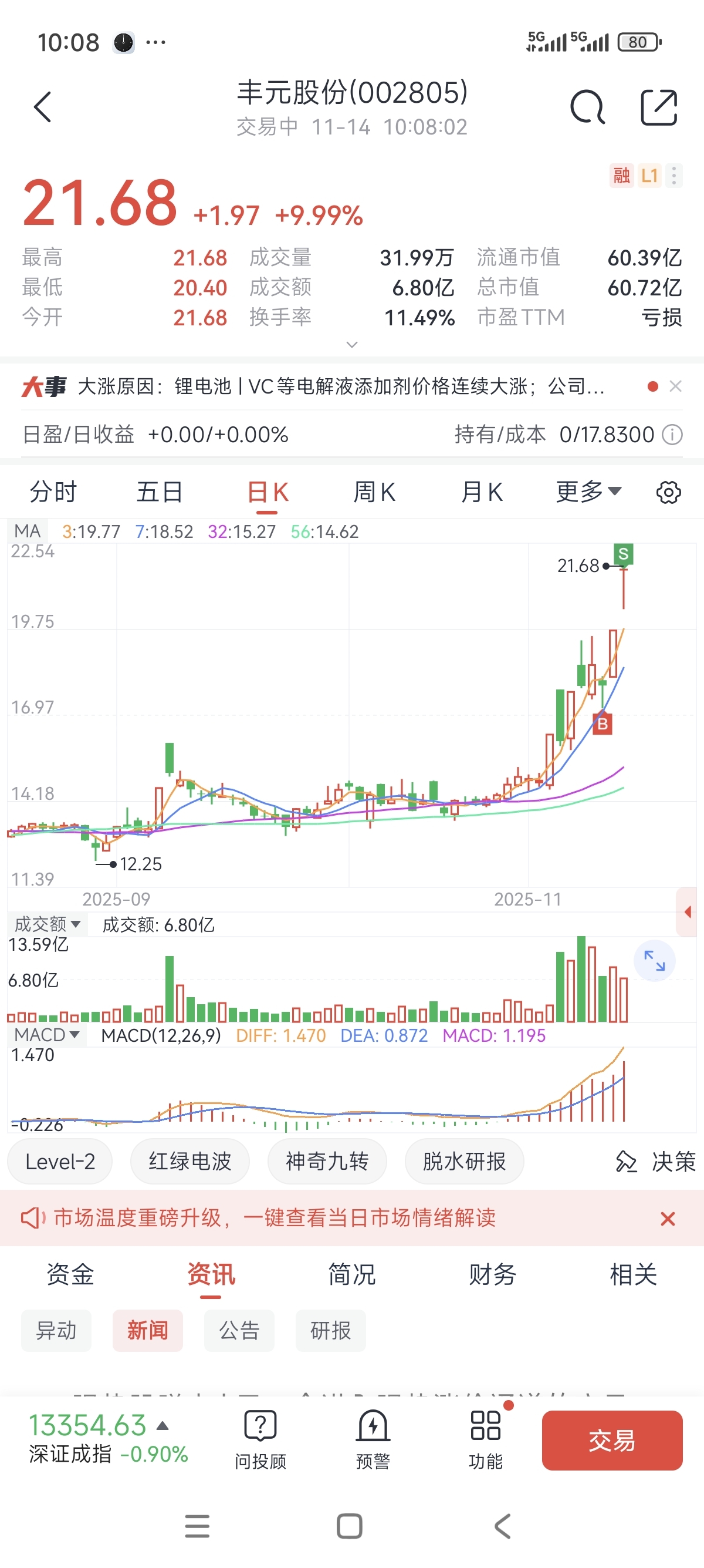 $丰元股份(SZ002805)$ 走了走了,两天两板够吃了