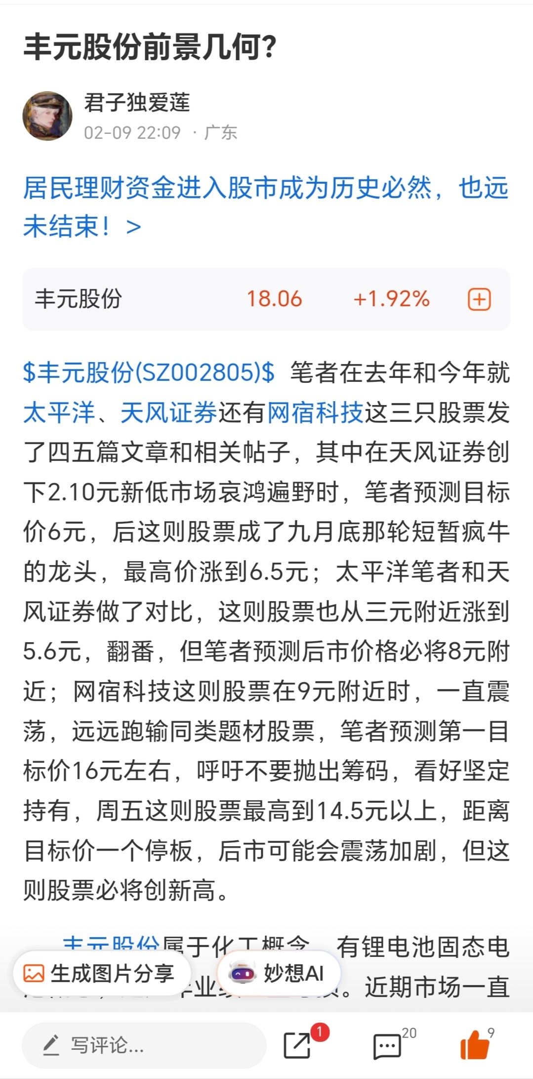 $丰元股份(SZ002805)$ 还有人质疑吗?看我前面发的帖子。